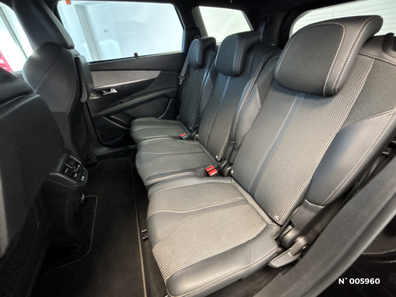 Appuis-tête à sécurité optimisée réglables en hauteur sur les sièges conducteur et passager AV ainsi que sur les places latérales AR / Avertisseur de temps de conduite / Barres de toit longitudinales profilée en Aluminium / Barres de toit longitudinales profilée en Aluminium / Boîte à gants floquée et éclairée / Calandre GT avec design évolutif chromé / Canules d'echappement de style chromées / Ceintures de sécurité AR 3 points à enrouleur (x3) au 2 rang avec prétensionneurs et limiteurs d'effort aux places latérales / Ceintures de sécurité AR 3 points à enrouleur (x3) avec prétensionneurs et limiteurs d'effort aux places latérales / Ceintures de sécurité AV 3 points à enrouleur, réglables en hauteur avec prétensionneurs et limiteurs d'effort / Ceintures de sécurité 3 points à enrouleur (x2) au 3ème rang / Commande de verrouillage à distance (2 plips) / Commande de verrouillage à distance (2 télécommandes) / Commandes de lève-vitres avec inserts chromés / Commandes intérieures de portes chromées / Contrôle dynamique de stabilité CDS avec antipatinage électronique ASR / Contrôle dynamique de stabilité ESP avec antipatinage électronique ASR / Radio avec fonction DAB,bi-tuner compatible MP3 et connectivité Bluetooth (audio streaming, kit mains libres), avec commandes au volant, 6 HP, écran tactile capacitif 10" HD / Reconnaissance étendue des panneaux (Stop, Sens interdit) et préconisation des panneaux de vitesse / Rétroviseur intérieur photosensible frameless - sans cadre / Rétroviseur intérieur photosensible sans cadre / Rétroviseurs extérieurs électriques, dégivrants et rabattables électriquement avec éclairage d'accueil à LED / Sabot de pare-chocs AV gris métallisé / Sabots de pare-chocs AV gris métallisé / Sécurité enfants électrique des vitres AR / Sellerie mi-TEP & Tissu "Belomka" / Coques de rétroviseurs extérieurs Noir Perla Nera / Décors de planche de bord et panneaux de portes Alcantara Gris Greval / Décors intérieurs (baguettes de planche de bord et panneaux de portes, enjoliveur de console) chromés / Détection de sous-gonflage indirecte / Direction assistée électrique, colonne de direction réglable en hauteur et profondeur (mécanique) / Drive Mode : Choix de 2 modes de conduite (Eco ou Sport) / Driver Sport Pack Sonorité du moteur amplifiée et plus sportive, pédale d'accélarateur plus réactive, direction assistée plus sportive, passage de vitesses sport (pour les motorisaions à boîte automatique). Possibilité d'affichage des paramètres véhicule dans le combiné numérique tête haute / Eclairage intérieur à LED: plafonniers et rangements / Eclairage intérieur LED: plafonnier tactile 3 spots + 2 LEDs d'ambiance, 2 liseuses AR, pare-soleil, boîte à gants, accoudoir central, zone connectique, caves à pied, zone coffre (x2) / Enjoliveur d'arc de pavillon en inox / Enjoliveur de seuil d'entrée de coffre chromé / Enjoliveur en inox sur les protecteurs de bas de portes / Essuie-vitre AR avec enclenchement automatique en marche AR / Essuie-vitre AV avec système de lavage "Magic Wash" / Frein de stationnement électrique avec aide au démarrage en pente / Habitacle et ciel de pavillon Noir Mistral / Indicateur de rapport conseillé / Inserts d'ailes AV chromés / Jantes alliage 18" "Detroit" bi-ton diamantées Noir Onyx / Jonc de vitres en inox / Joncs de vitres latérales en inox / Kit de dépannage de pneumatique : compresseur 12 volts, flacon de produit de colmatage, anneau de remorquage, deux cales de roue, manivelle de frein de stationnement électrique / Lève-vitres AV/AR électriques et séquentiels avec antipincement / Lunette AR chauffante avec antennes sérigraphiées / Mirror Screen (compatible Mirrorlink, Apple CarPlay, Android Auto) / Navigation 3D connectée avec écran tactile capacitif 10" HD Avec reconnaissance vocale, cartographie Europe, services de Navigation connectée TomTom 3 ans inclus, connexion automatique et permanente via carte SIM intégrée au véhicule / Pack City 1 / Pack Drive Assist Plus / Pack Drive Assist Plus / Pack Drive Assist Plus / Pack Drive Assist Plus / Pack Eclairage d'ambiance / Pack Enfants / Pack Safety Plus / Pack Visibilité / Passages de roues rapportés noirs / Pédale d'accélarateur plus réactive / Pédalier et repose-pied conducteur aluminium / Pédalier et repose-pied conducteur en aluminium / Peugeot Connect: Ecran tactile capacitif 10'' HD,navigation 3D connectée avec reconnaissance vocale aux services de Navigation connectée TomTom, SOS & Assistance, Teleservices / PEUGEOT Connect SOS & Assistance et Teleservices / Peugeot i-Cockpit avec combiné tête haute numérique haute qualité d'affichage, écran tactile capacitif 10" HD et volant compact multi-fonctions / Peugeot i-Cockpit avec combiné tête haute numérique reconfigurable, écran tactile capacitif 10" et volant compact multi-fonctions / Plafonnier avec liseuses : rang 1, rang 2, rang 3 / Plafonniers avec spots de lecture avant (x2), arrière (x2) et en rang 3 (x2) / Planche de bord surpiquée / Poches/filets aumonières au dos des sièges AV / Poignées de portes couleur carrosserie / Prise USB (dans la zone connectique) / Prises USB de charge (x2) au 2ème rang / Prises 12 V (x 3 : zone connectique, AR de console et coffre) / Projecteurs "Peugeot Full LED Technology" avec correction automatique de site, fonction Eclairage Virage Statique,"Foggy Mode" et feux diurnes à LED prolongés dans les projecteurs / Accès et démarrage mains libres / Accoudoir central AV à ouverture papillon, avec compartiment de rangement éclairé et réfrigérable / Aide graphique et sonore au stationnement AR / Air conditionné automatique bi-zone avec aérateurs aux places AR / Airbags frontaux conducteur et passager adaptatifs (passager neutralisable par clé), airbags latéraux conducteur et passager AV, airbags rideaux de tête aux places AV et AR, en rang 1,2,3 / Airbags fronta