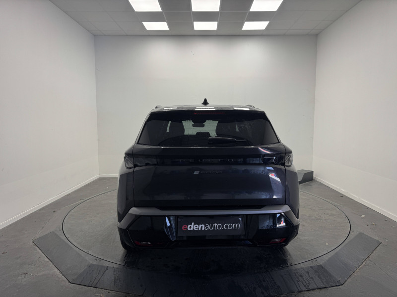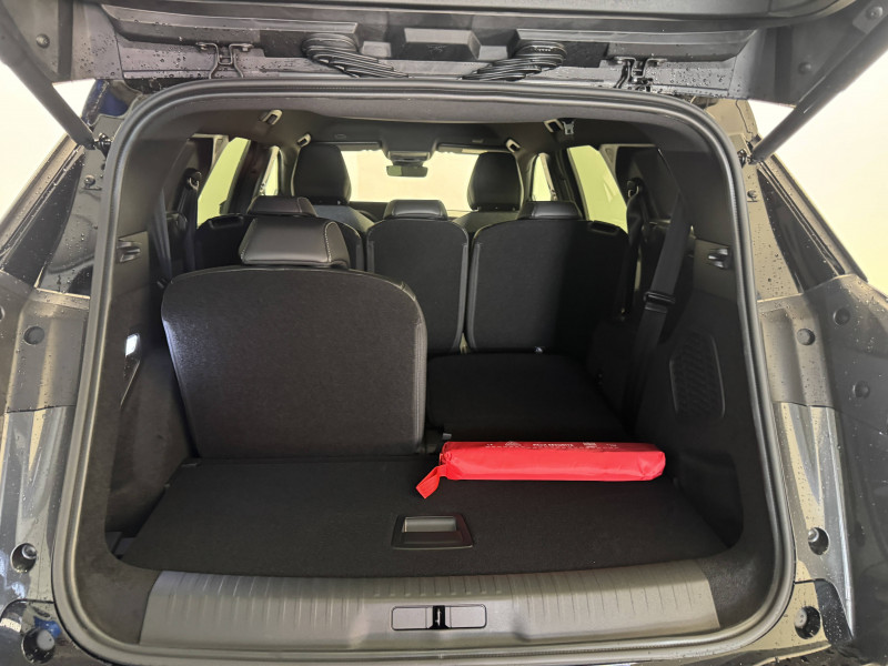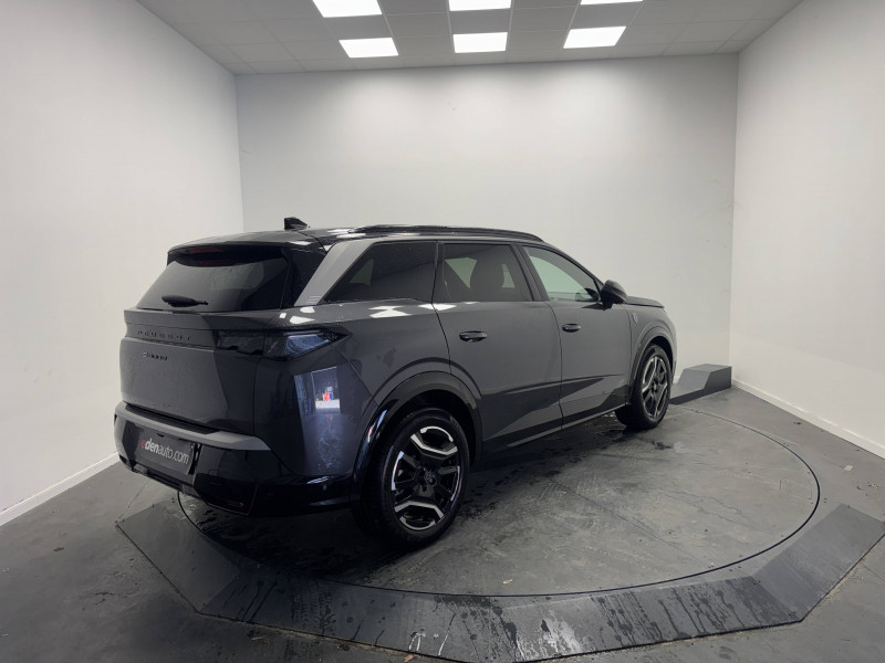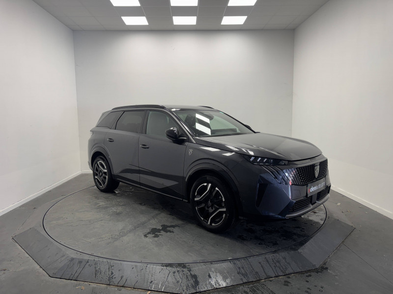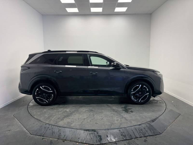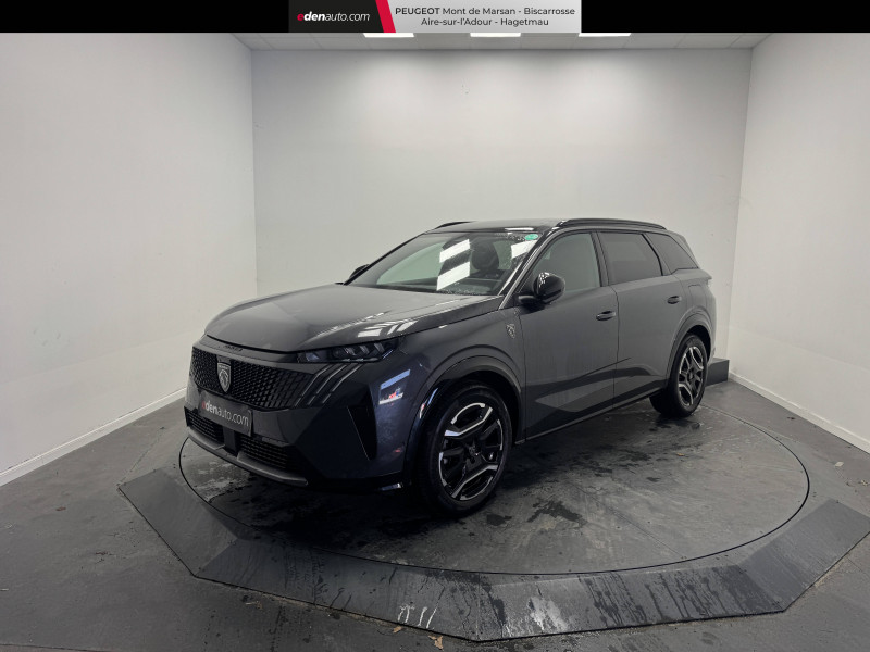 2 prises 12 V (Console centrale, coffre) / 4 poignées de maintien rétractables / 6 airbags: Frontaux conducteur et passager (passager neutralisable par clé), latéraux conducteur et passager AV (thorax et bassin), rideaux aux places AV et AR (tête et thorax) / 6 HP (2 tweeters et 2 woofers à l'AV et 2 larges bandes à l'AR) / Accès et démarrage mains libres Proximity 2 Télécommandes 3 boutons (verrouillage, coffre, déverrouillage) / Bandeau entre les feux AR Noir laqué avec lettrage PEUGEOT / Bandeau entre les projecteurs Noir laqué avec logo 5008 / Banquette 2 places au rang 3 avec dossiers rabattables 50/50 / Banquette rang 2 avec accoudoir central / Banquette rang 2 coulissante 60/40, avec dossiers inclinables et rabattables 40/20/40, avec fonction Easy Access aux places du rang 3 / Barres de toit longitudinales Noir Brillant / Boîte automatique à variation continue / Câble électrique mode 3 triphasé 22 kW / Calandre couleur caisse, écopes latérales Noir laqué, décor inférieur Gris Méteor / Chargeur embarqué 11 kW triphasé bi-directionnel Avec prédisposition V2L (Vehicle to Load) / Commutation adaptative des projecteurs / Détection de sous-gonflage indirecte / Drive Assist - Régulateur de vitesse adaptatif avec fonction Stop & Go / Eclairage d'ambiance indirect, jour & nuit sur la planche de bord, les panneaux de portes AV/AR et sous l'écran panoramique 21'', associé aux modes de conduite, personnalisable en 8 couleurs / Eclairage intérieur Miroirs de courtoisie conducteur et passager occultables éclairés à LED, Plafonnier AV et lisseuses AR DOME à LED / Eléments de style extérieur Jupes inférieures AV et AR, enjoliveurs de passages de roues et protections inférieures de portes Noir laqué / Eléments de style intérieure Planche de bord moussée avec décor tissu RIMINI chiné, décor d'alcôve en Aluminium sérigraphié, façade et aérateurs Noir laqué avec décor Gris Stène Panneaux de portes avec décor tissu RIMINI chiné, décor d'alcôve en Aluminium sérigraphié et jonc Gris Stène, accoudoirs TEP Isabella, surpiqûres Iced Clay à l'AV Console centrale avec décor tissu RIMINI chiné, façade Noir laqué et jonc Gris Stène, accoudoir tissu RIMINI chiné / Enjoliveurs de passages de roues et protections inférieures de portes Noir grainé / Essuie-vitre AV à déclenchement automatique / Fonction préchauffage de la batterie de traction / Frein de stationnement électrique / Habitacle et ciel de pavillon Noir / Hayon motorisé avec accès mains libres / Jantes alliage 19'' diamantées LULEA Noir Orbital, vernis brillant / Jupe inférieure Noir grainé / Lécheurs de vitres masqués / Lève-vitres AV/AR électriques et séquentiels avec antipincement / Monogrammes ailes AV: blason PEUGEOT / Monogrammes AR E5008 / Monogrammes AV : blason PEUGEOT et 5008 / Pack Safety Plus Régulateur / Limiteur de vitesse, Freinage d'urgence automatique avec alerte risque de collision pilotée par caméra et radar, Alerte active de franchissement involontaire de ligne et bas côté, Reconnaissance étendue des panneaux de signalisation et préconisation de vitesse, Alerte attention conducteur / Pare-brise feuilleté acoustique / Pare chocs AR avec décor Gris Meteor / Pédalier et repose pied aluminium / PEUGEOT i-Cockpit panoramique avec écran incurvé et flottant 21'' HD / PEUGEOT i-Connect Advanced - Navigation 3D connectée, 4 prises USB: 1 prise USB C (Data et charge) et 1 prise USB C (Charge) à l'AV, 2 prises USB C (Charge) à l'AR - Connect Plus (Abonnement 6 mois inclus) - 2 prises 12 V (Console centrale, coffre) / PEUGEOT i-Toggles virtuels avec 10 raccourcis personnalisables / Plancher de coffre modulable 2 positions / Projecteurs PEUGEOT PIXEL LED Eclairage adaptatif, commutation automatique des feux de route, feux de route avec fonctions anti éblouissement et boost / Rétroviseur intérieur électrochrome / Rétroviseurs extérieurs dégivrants avec réglage et rabattement électriques, éclairage de seuil / Sellerie tissu NEW UZIRIS embossé, accompagnement TEP Isabella, écharpe tissu RIMINI chiné, surpiqûres Iced Clay / Seuil de portes AV inox avec lettrage PEUGEOT / Siège conducteur à réglage lombaire manuel / Stores pare soleil intégrés dans les portes AR / Surtapis AV et AR avec surpiqûres Iced Clay / Toit et becquet AR Black Diamond / Visiopark 1: caméra de recul HD & aide au stationnement AV/AR, graphique et sonore / Vitres AR, vitres de custode et lunette AR surteintées / Volant chauffant / Volant compact, cuir fleur lisse et perforé avec commandes intégrées Noir Laqué, décors Cast Iron, surpiqûres Iced Clay, insert Noir laqué avec badge GT