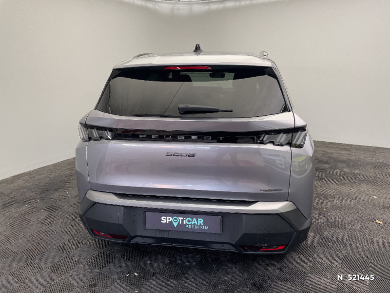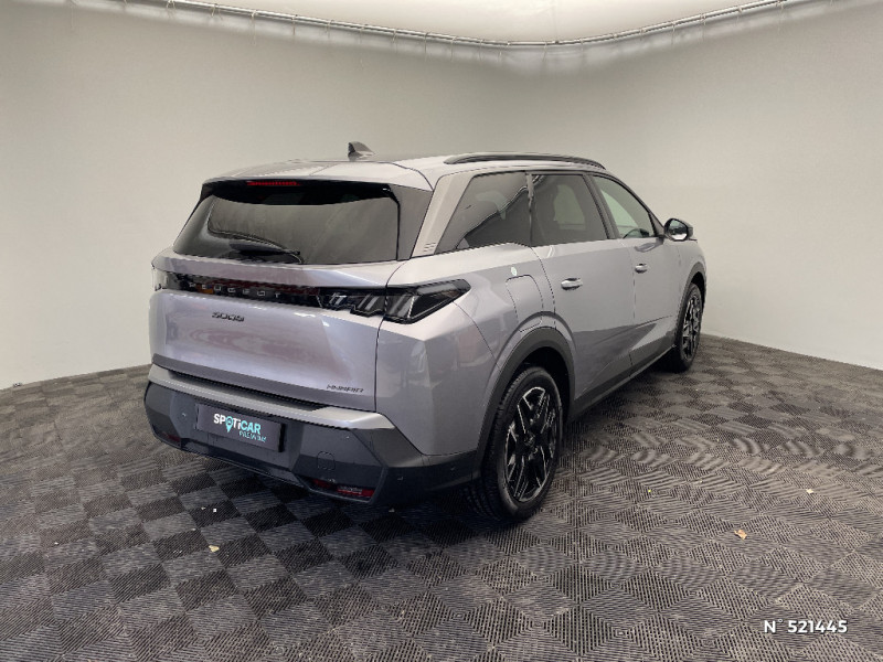Banquette 2 places au rang 3 avec dossiers rabattables 50/50 / Rétroviseur intérieur électrochrome / 4 poignées de maintien rétractables (2 à l'AV et 2 à l'AR) / PEUGEOTConnect One Fonctionnalités principales à bord (Mises à jour Over The Air, Géolocalisation), Services de sécurité (Appel d?urgence, Peugeot Assistance), Services d?entretien (Télémaintenance, guide d?utilisation digital) (Abonnement 10 ans) / Rétroviseurs extérieurs dégivrants avec réglage et rabattement électriques,éclairage de seuil / PEUGEOT Connect Plus Services de sécurité: alarme connectée (Si véhicule équipé de l?alarme), Services à distance (E Remote Control, Remote Control, Find My Car, My Trip Report, Peugeot Skill for Alexa) e-ROUTES par Free2move charge (Abonnement 6 mois inclus, renouvellement 8 /mois) / Détection de sous-gonflage indirecte / Barres de toit longitudinales Noir Brillant / Habitacle et ciel de pavillon noir / Volant compact croute de cuir avec commandes intégrées Noir laqué, décors Gris Stène / Sellerie tissu CRISPY embossé, accompagnement TEP Isabella, écharpe tissu RIMINI chiné, surpiqûres Quartz / 6 haut-parleurs (2 tweeters et 2 woofers à l'AV et 2 larges bandes à l'AR) / Bandeau entre feux AR Noir laqué avec lettrage 'PEUGEOT' / Pare chocs AR avec décor Gris Meteor / Monogrammes AR '5008' et 'Hybrid / Monogrammes AV: 'blason PEUGEOT' et '5008' / Essuie-vitre AV à déclenchement automatique / Jupe inférieure Noir grainé. / Lécheurs de vitres masqués / 3 prises 12V 3 prises 12 V (Console centrale, AR de la console centrale, coffre) / Bandeau entre les projecteurs Noir laqué avec logo ?5008' / Calandre couleur caisse, écopes latérales Noir laqué, décor inférieur Gris Méteor / Eclairage intérieur Plafonnier AV et liseuses arrière à LED, Boite à gants et rangement de console éclairés à LED, Eclairage des caves à pieds AV à LED / Pack Safety Plus Régulateur / Limiteur de vitesse, Freinage d'urgence automatique avec alerte risque de collision, Alerte active de franchissement involontaire de ligne et bas côté, Reconnaissance étendue des panneaux de signalisation et préconisation de vitesse, Alerte attention conducteur / Visiopark 1 Caméra de recul HD & aide au stationnement AV et AR, graphique et sonore / 6 airbags: Frontaux conducteur et passager (passager neutralisable par clé), latéraux conducteur et passager AV (thorax et bassin), rideaux aux places AV et AR (tête et thorax) / Lève-vitres AV et AR électriques séquentiels avec antipincement / Plancher de coffre modulable 2 positions / PEUGEOT i-Cockpit panoramique avec Double écran HD flottant (2 x 10'') / Vitres AR, custodes et lunette AR teintées / Pare-brise feuilleté acoustique / PEUGEOT i-Connect Radio DAB, Bluetooth® (connexion 2 téléphones), Mirror Screen sans fil (Apple CarPlay / Android Auto), Peugeot Connect SOS & Assistance, 1 prise USB C (Data & charge) / Jantes alliage 19" diamantées BREDA Noir Orbital, vernis brillant / Accès et démarrage mains libres Proximity 2 Télécommandes 3 boutons (verrouillage, coffre, déverrouillage) / Eléments de style intérieure Planche de bord moussée avec décor tissu RIMINI chiné et alcôve Graphène,façade et aérateurs Noir laqué avec décor Gris Stène, Panneaux de portes avec décor tissu RIMINI chiné, alcôve Graphène et jonc Gris Stène, accoudoirs TEP Isabella, surpiqûres Quartz à l'AV, Console centrale avec décor tissu RIMINI chiné, façade Noir laqué et jonc Gris Stène, accoudoir tissu RIMINI chiné / Enjoliveurs de passages de roues et protections inférieures de portes Noir grainé / Banquette rang 2 coulissante 60/40, avec dossiers inclinables et rabattables 40/20/40, avec fonction Easy Access aux places du rang 3 / Boîte de vitesse automatique, séquentielle (6 rapports) / Projecteurs Peugeot LED Technology / Frein de stationnement électrique / 3 prises 12 V (Console centrale, rang 2, coffre)