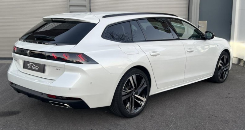 ======= OPTIONS ======= Peinture Nacrée (Blanc Nacré) Accès et démarrage mains-libres Caméra de recul + Vision 360 Aide au maintien dans la file (LKA) Barres de toit longitudinales noires brillantes Boitiers de rétroviseurs extérieurs noir brillant Calandre à damier chromé et contour noir brillant Driver Sport Pack Eclairage d'ambiance bleu sur planche de bord, panneaux de porte et console centrale Eclairage intérieur à LED étendu : Eclairage intérieur LED + zone coffre (x2), pare-soleil, accoudoir central,caves à pieds Entourage des vitres en finition noire brillante Fixation pour sièges enfants ISOFIX et Top Tether pour les places arrière Fonction 'Mirror Screen' (Apple Carplay Android Auto) Hayon électrique mains libres Jantes alliage 19'' Augusta bi-ton diamantées Jupe de pare-chocs arrière peinte noire brillante Limiteur de vitesse Pack Sièges semi-électrique 'AGR' Pack Visibilité Pédalier et repose-pied en aluminium Peugeot Full LED Technology : Projecteurs Full LED avec correction automatique de site, clignotants avant à LED et éclairage en virage statique et Feux 3D Full LED adaptatifs Régulateur de vitesse adaptatif avec fonction Stop & Go Rétroviseurs extérieurs électriques et dégivrants, rabattables électriquement avec éclairage d'accueil à LED Sélecteur de mode de conduite (ECO NORMAL SPORT) Sellerie TEP Mistral & Alcantara Mistral Sièges avant chauffants Système de surveillance d'angle mort Système Hi-Fi Premium Focal - 10 haut-parleurs Volant cuir fleur perforé avec bagues chromées et badge GT ======= EQUIPEMENTS DE SERIE ======= Accès et démarrage mains-libres Caméra de recul + Vision 360 Aide au maintien dans la file (LKA) Barres de toit longitudinales noires brillantes Boitiers de rétroviseurs extérieurs noir brillant Calandre à damier chromé et contour noir brillant Driver Sport Pack Eclairage d'ambiance bleu sur planche de bord, panneaux de porte et console centrale Eclairage intérieur à LED étendu : Eclairage intérieur LED + zone coffre (x2), pare-soleil, accoudoir central,caves à pieds Entourage des vitres en finition noire brillante Fixation pour sièges enfants ISOFIX et Top Tether pour les places arrière Fonction 'Mirror Screen' (Apple Carplay Android Auto) Hayon électrique mains libres Jantes alliage 19'' Augusta bi-ton diamantées Jupe de pare-chocs arrière peinte noire brillante Limiteur de vitesse Pack Sièges semi-électrique 'AGR' Pack Visibilité Pédalier et repose-pied en aluminium Peugeot Full LED Technology : Projecteurs Full LED avec correction automatique de site, clignotants avant à LED et éclairage en virage statique et Feux 3D Full LED adaptatifs Régulateur de vitesse adaptatif avec fonction Stop & Go Rétroviseurs extérieurs électriques et dégivrants, rabattables électriquement avec éclairage d'accueil à LED Sélecteur de mode de conduite (ECO NORMAL SPORT) Sellerie TEP Mistral & Alcantara Mistral Sièges avant chauffants Système de surveillance d'angle mort Système Hi-Fi Premium Focal - 10 haut-parleurs Volant cuir fleur perforé avec bagues chromées et badge GT Nb. Vitesses : 8 Véhicule Importé : Non Conso Mixte : 4.00l/100