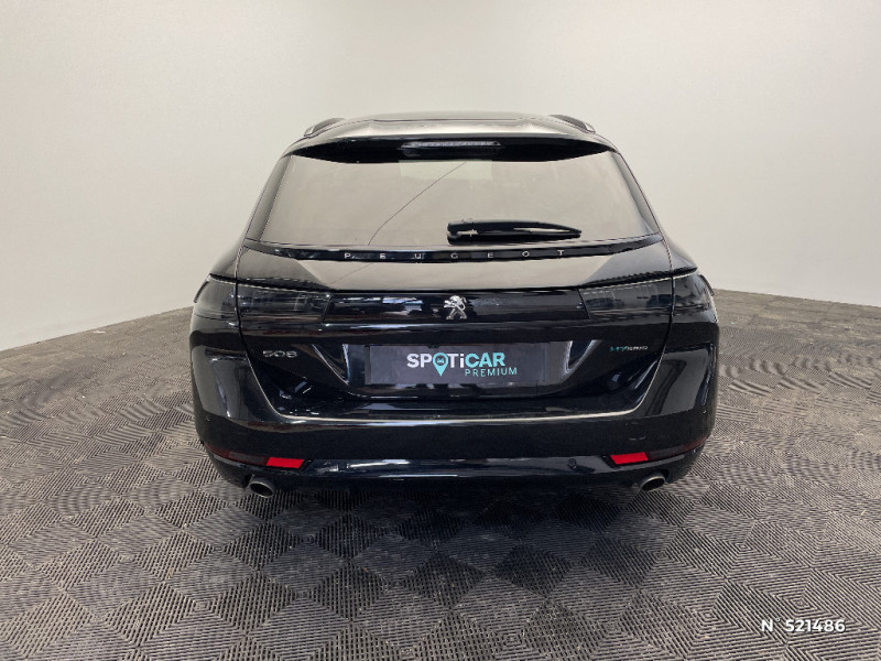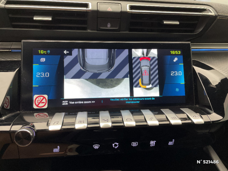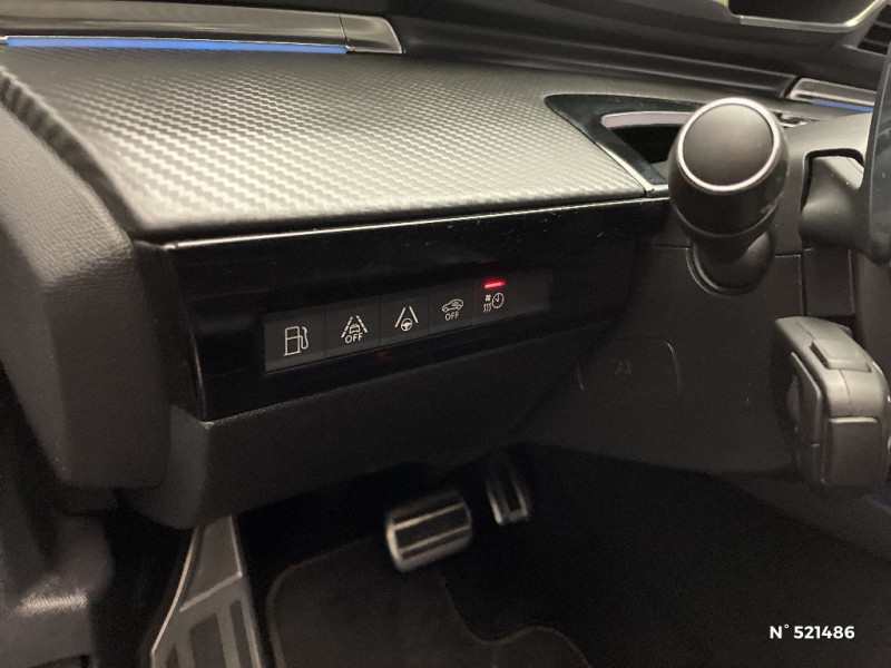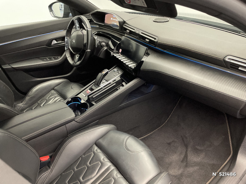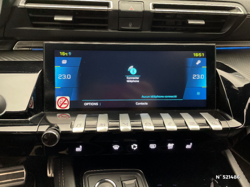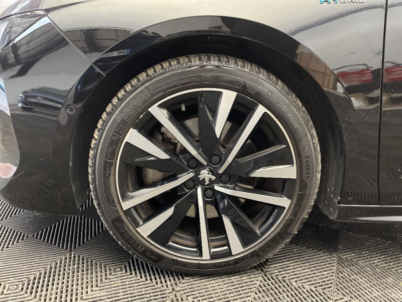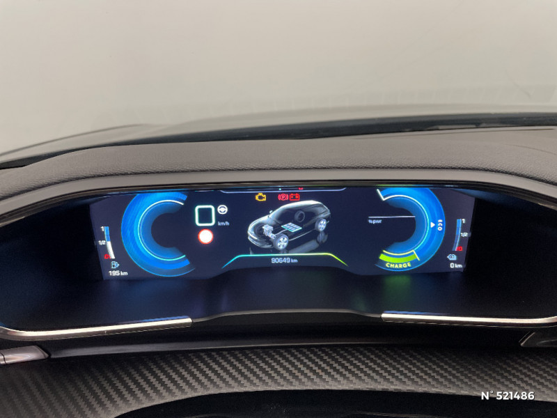 2 prise USB sur console AR / Pédalier et repose-pied conducteur en aluminium / Aide au maintien de la position dans la voie / Jupe de pare-chocs AR noir brillante / Capacité batterie 11,6 kWh / Pré-conditionnement thermique via MyPeugeot ou l'écran central / Système d'alerte sonore du véhicule émis à faible allure en roulage électrique, audible depuis l'extérieur pour la sécurité des piétons / Projecteurs Full LED avec correction automatique de site, clignotants AV à LED et éclairage en virage statique / Fonction DAB (Radio Numérique Terrestre) / Lève-vitres AV et AR électriques séquentiels avec antipincement / Ceintures de sécurité AV à enrouleurs à prétension pyrotechnique et limiteur d'efforts / Accès et démarrage mains libres / Boitiers de rétroviseurs extérieurs noirs brillants / Alerte attention conducteur / Commutation automatique des feux de route / Driver Sport Pack / Pack Visibilité / Détection de sous-gonflage indirecte / Alerte active de franchissement involontaire de ligne et bas côté / Reconnaissance étendue des panneaux (Stop, Sens interdit) / Pourtour de vitres latérales noir brillant / Barres de toit longitudinales Noir Brillant / Volant cuir fleur perforé avec bagues chromées et badge GT / Navigation 3D connectée avec reconnaissance vocale, SOS & Assistance,Teleservices avec écran 10'' HD et 2 prises USB à l'AV / Frein de stationnement électrique avec aide au démarrage en pente et serrage automatique / Sélecteur mode de conduite : Electric/Sport/HYBRID / Trappe de recharge électrique (aile AR gauche) avec éclairage d'accueil et témoins lumineux de charge programmable / Badge "HYBRID", sur custode AR et volet de coffre / Rétroviseur intérieur photosensible sans cadre, avec témoin lumineux de roulage en mode Electric / Toggle Switches' chromés (touches 'piano' d'activation des fonctions de l'écran tactile) / Garnissage TEP Mistral & Tissu "Belomka" Mistral / Jantes alliage 18" Sperone bi-ton diamantées / Accoudoir central AV à ouverture papillon, avec compartiment de rangement éclairé / Boîte à gants floquée et éclairée / Surtapis AV et AR noirs avec double surpiqûre aikinite / Feux 3D Full LED adaptatifs / Rétroviseurs extérieurs électriques, dégivrants et rabattables électriquement avec éclairage d'accueil à LED / Module 2 prises USB de charge pour les passagers AR / Console centrale AV avec 2 porte-gobelets / Câble de recharge mode 2 (10A, 12.3 kW, pour prise domestique standard) / Freinage d'urgence automatique (vidéo et radar) avec alerte sur risque de collision / Airbags frontaux conducteur et passager adaptatifs (passager neutralisable par clé), airbags latéraux conducteur et passager AV, airbags rideaux de tête aux places AV et AR / Calandre à damiers dark chrome et contour noir brillant / Banquette AR rabattable 1/3 - 2/3 (avec modularité "Magic Flat" et commandes dans le coffre) avec accoudoir et trappe à skis / Direction assistée électrique, colonne de direction réglable en hauteur et profondeur (mécanique) / Air conditionné automatique bi-zone avec aérateurs aux places AR / Seuils de portes AV en Inox / Crochets pour cintres aux places AR / Capot actif / Filets aumônières au dos des sièges AV / Habitacle et ciel de pavillon noir / Ceintures de sécurité AR avec limiteurs d'effort progressifs / Fonctions Mirror Screen (Apple Carplay/Android Auto) / Air Quality System (sonde de pollution, couplée à un filtre à charbon actif Haute Efficacité) / Vitres latérales AR et lunette AR surteintées / Bacs de portes AV floqués / Commande de verrouillage à distance / Planche de bord surpiquée / Programme de Stabilité Electronique (ESC) avec ASR, ABS, REF, AFU, CDS et TSM / Kit de dépannage de pneumatique : compresseur 12 volts, flacon de produit de colmatage, anneau de remorquage, deux cales de roue, manivelle de frein de stationnement électrique / Essuie-vitre AV avec système de lavage "Magic Wash" (gicleurs intégrés aux balais) / Aide graphique et sonore au stationnement AV et AR / Eclairage d'ambiance bleu sur planche de bord, panneaux de porte et console centrale / Appuis-tête réglables en hauteur sur les sieges conducteur et passager AV et sur les places AR / Fixations pour 2 sièges enfants ISOFIX, aux places AR, inclus Top Tether / Eclairage intérieur à LED étendu Eclairage intérieur LED + zone coffre (x2), pare-soleil, accoudoir central, porte-gobelets, caves à pieds / Caméra de recul avec restitution sur l'écran tactile d'une vue AR et d'une vue de dessus de l'environnement AR du véhicule / Avertisseur de temps de conduite / Chargeur embarqué 3,7 kW / Décors de planche de bord et panneaux de portes aspect Carbone