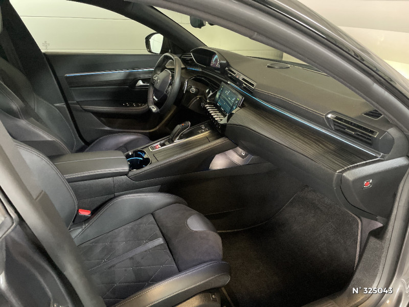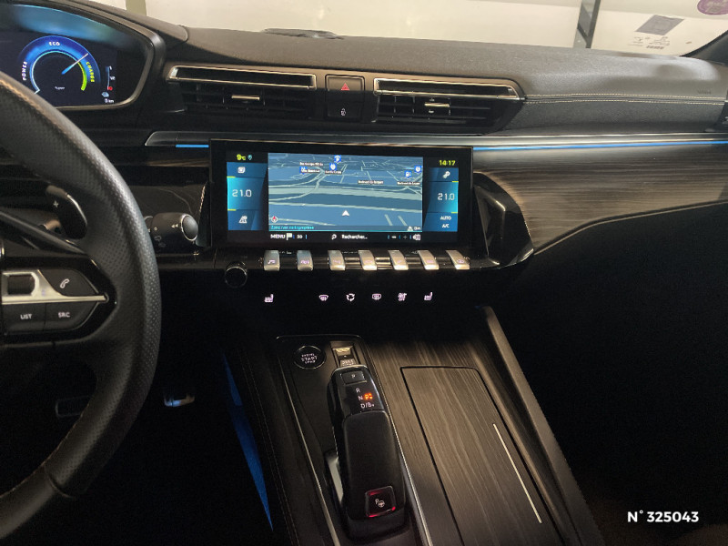 Planche de bord surpiquée / Pack Visibilité / Filet d'arrêt de charges hautes / Décors de planche de bord et panneaux de portes en bois faà§on essence de Zebrano / Chargeur embarqué 3,7kW : câble de recharge T2 avec prise murale / Contrôle de la charge de la batterie à distance / Teinte métallisée Bleu Celebes / Garnissage TEP Mistral & Alcantara Greval / Avertisseurs sonore exterieur / Garnissage Mistral & Alcantara/Mistral / Fixations pour 2 sièges enfants ISOFIX, aux places AR, inclus Top Tether / Barres de toit longitudinales noires laquées / 2 prise USB sur console AR / Câble de recharge mode 2 (10A, 12.3 kW, pour prise domestique standard) / Ecrous de roues antivol / Garnissage Alcantara Greval & Cuir Sellier noir / Sellerie Alcantara Greval & Cuir Sellier noir / Sièges AV mécaniques à réglage lombaire électrique / Calandre à damiers dark chrome et contour noir brillant / Navigation 3D connectée avec reconnaissance vocale, SOS & Assistance,Teleservices avec écran 10'' HD et 2 prises USB à l'AV / Banquette AR rabattable 1/3 - 2/3 (avec modularité "Magic Flat" et commandes dans le coffre) avec accoudoir et trappe à skis / Commutation automatique des feux de route / Système HI-FI Premium FOCAL / Feux de recul / Seuils de portes AV en Inox / Boîte à gants floquée et éclairée / Air Quality System (sonde de pollution, couplée à un filtre à charbon actif Haute Efficacité) / Filet arrêt de charge / Pré-chauffage / climatisation du véhicule à distance / Navigation 3D connectée avec reconnaissance vocale, SOS & Assistance, Teleservices avec écran 10'' et 2 prises USB à l'AV, Fonction DAB, Pack Alertes Zones de Danger / Eclairage intérieur à LED étendu Eclairage intérieur LED + zone coffre (x2), pare-soleil, accoudoir central, porte-gobelets, caves à pieds / Ceintures de sécurité AV à enrouleur pyrotechnique avec prétensionneurs et limiteurs d'effort / Sièges AV mécaniques à réglage manuel en hauteur / Reconnaissance étendue des panneaux (Stop, Sens interdit) / Freinage d'urgence automatique (Active Safety Brake) avec alerte risque de collision (Distance Alert) / Câble de recharge mode 2 (8A, 1,8 kW, pour prise domestique standard) / Système stop & go couplé avec l'assistance au positionnement sur la voie / Kit de dépannage de pneumatique / Jantes alliage 18" Sperone bi-ton diamantées / Habitacle et ciel de pavillon Noir / Boîtiers de rétroviseurs extérieurs noirs brillants / 2 prise USB AV et 2 prises USB pour les passagers AR / Banquette AR rabattable 1/3 - 2/3 avec accoudoir et trappe à skis / Ceintures de sécurité AV à enrouleur pyrotechnique / Pack Safety Plus / Pédalier et repose-pied conducteur aluminium / Direction assistée électrique, colonne de direction réglable en hauteur et profondeur (mécanique) / Active Suspension Control / Peugeot Full LED Technology / Rétroviseurs extérieurs électriques, dégivrants et rabattables électriquement avec éclairage d'accueil à LED / Crochets pour cintres aux places AR / Surtapis AV et AR noirs avec double surpiqûre aikinite / Rétroviseurs extérieurs photosensibles électriques, dégivrants et rabattables électriquement avec éclairage d'accueil à LED, indexation de marche AR / Rails de coffre en aluminium avec crochets coulissants / Trappe de recharge électrique (aile AR gauche) avec éclairage d'accueil et témoins lumineux de charge programmable / Sièges AV chauffants avec sièges AGR / Hayon mains libres / Lève-vitres AV/AR électriques et séquentiels avec antipincement / Toggle Switches (sélecteurs impulsionnels type aviation) / Accès et démarrage mains libres / Feux 3D Full LED adaptatifs / Câble de recharge T2 avec prise murale / Pré-conditionnement thermique via MyPeugeot ou l'écran central / Fonctions Mirror Screen (Apple Carplay/Android Auto) / Rétroviseurs extérieurs photosensibles électriques, dégivrants et rabattables électriquement avec éclairage d'accueil à LED / Console centrale AV avec 2 porte-gobelets rétroéclairés / Commande de verrouillage à distance / Essuie-vitre AV avec système de lavage "Magic Wash" / Accoudoir central AV à ouverture papillon, avec compartiment de rangement éclairé / Peugeot i-Cockpit avec combiné tête haute numérique reconfigurable, écran tactile capacitif 10" et volant compact multi-fonctions / Pack Drive Assist Plus / Frein de stationnement électrique avec aide au démarrage en pente et serrage automatique / Barres de toit longitudinales Noir Brillant / Fonction DAB (Radio Numérique Terrestre) / Programme de Stabilité Electronique (ESC) avec ASR, ABS, REF, AFU, CDS et TSM / Capacité batterie 11,6kWh / Sélecteur mode de conduite : Electric/Sport/HYBRID / Ceintures de sécurité AV à enrouleurs à prétension pyrotechnique et limiteur d'efforts / Air conditionné automatique bi-zone avec aérateurs aux places AR / Essuie-vitre AV avec système de lavage "Magic Wash" (gicleurs intégrés aux balais) / Air conditionné automatique bi-zone avec aérateurs aux AR / Jupe de pare-chocs arrière peinte noire brillante et canules d'échappement rondes déportées chromées / Détection de sous-gonflage indirecte / Bacs de portes AV floqués / Console centrale AV avec 2 porte-gobelets / Ceintures de sécurité AR avec limiteurs d'effort progressifs / Volant cuir fleur perforé avec bagues chromées et badge GT / Aide graphique et sonore au stationnement AV et AR, camera de recul avec restitution sur l ecran tactile d une vue AR et d une vue de dessus de l environnement AR du vehicule(Visiopark 1) / Badge "HYBRID", sur custode AR et volet de coffre / Aide graphique et sonore au stationnement AR, AV et en latéral Full Park Assist, VisioPark2 / Appuis-tête réglables en hauteur sur les sieges conducteur et passager AV et sur les places AR / Banquette AR rabattable 1/3 - 2/3 avec accoudoir et trappe à skis Modularité "Magic flat" avec commandes dans le coffre / Avertisseur de temps de conduite / Pa