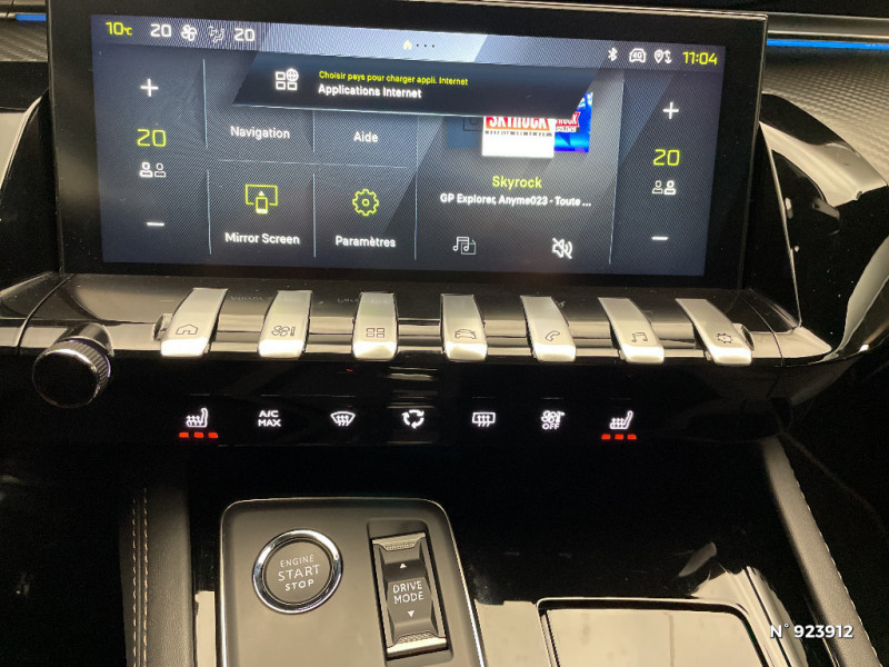 Peugeot i-Connect Advanced Navigation 3D connectée (cartographie Europe) avec écran tactile 10" HD et reconnaissance vocale en langage naturel, Services de Navigation connectée TomTom (TomTom Traffic, Prix Carburant, Parkings, Météo, Recherche Locale) et Alertes Zones de Danger avec essai gratuit pendant 6 mois inclus (Pack Connect Plus, détails sur services store.peugeot.fr), Connexion automatique et permanente via carte SIM intégrée au véhicule / Capot actif / Accoudoir central AV en TEP à ouverture papillon, avec compartiment de rangement éclairé / Contrôle embarqué de la charge de la batterie et du préconditionnement thermique du véhicule / Eclairage intérieur LED : Plafonniers AV et AR avec 2 spots de lecture, Pare soleil avec miroirs de courtoisie éclairés, rangements, caves à pieds / Avertisseur de temps de conduite / Fonction DAB (Radio Numérique Terrestre) / Air conditionné automatique bi-zone avec aérateurs aux places AR / Détection de sous-gonflage indirecte / Sélecteur de modes de conduite 'Drive Mode' (Electric, Hybrid, Sport) / Planche de bord et pads de console surpiqués ?Aïkinite? / Câble de recharge T2 mode 2 (10 A / 2,3 kW) / Accoudoir central AV à ouverture papillon, avec compartiment de rangement éclairé / Habitacle et ciel de pavillon Noir Mistral / 6 airbags (Frontaux adaptatifs, latéraux AV, rideaux AV et AR) / Frein de stationnement électrique avec aide au démarrage en pente et serrage automatique / Accès et démarrage mains libres / Badge "HYBRID" sur ailes AV et volet de coffre / Appuis-tête à sécurité optimisée réglables en hauteur (conducteur, passager et arrière x3) / Banquette AR rabattable 1/3 - 2/3 avec accoudoir central, trappe à skis et commandes de rabattement depuis le coffre / AVAS (système d'alerte sonore du véhicule émis à faible allure en roulage électrique, audible depuis l'extérieur pour la sécurité des piétons) / Barres de toit longitudinales Noir Brillant / Volant cuir fleur perforé avec bagues chromées et badge GT / Badge "HYBRID" sur volet de coffre / Peugeot i-Connect Advanced Navigation 3D connectée (cartographie Europe) avec écran tactile 10" HD, Reconnaissance vocale en langage naturel, Services de navigation connectée TomTom (TomTom Traffic, prix carburant, parkings, météo, recherche Locale) et Alertes zones de danger avec abonnement de 3 ans inclus, Peugeot Connect SOS & Assistance et Teleservices / Régulateur / limiteur de vitesse avec Préconisation Limitation de Vitesse / Kit de dépannage de pneumatique Avec compresseur 12 volts, flacon de produit de colmatage, anneau de remorquage, cales pour frein de stationnement électrique / Programme de Stabilité Electronique (ESC) Avec antipatinage des roues (ASR), antiblocage des roues (ABS), répartiteur électronique de freinage (REF), assistance au freinage d'urgence (AFU), contrôle dynamique de stabilité (CDS) et contrôle de stabilité de la remorque (TSM) / Projecteurs Peugeot Matrix LED Technology Eclairage adaptatif avec correction automatique de site, 3 modes (Routes, Autoroutes et Brouillard) et feux diurnes 3 griffes à LED intégrés aux projecteurs / Sécurité enfants des vitres AR / Pédalier et repose-pied conducteur aluminium / Pack Safety Plus Freinage d'urgence automatique par caméra et radar; Alerte risque de collision et Alerte attention conducteur; Alerte de franchissement involontaire de ligne et bas côté; Reconnaissance étendue des panneaux de signalisation; Système de surveillance d'angle mort / Aide au stationnement AR, AV et latérale (graphique et sonore) / Sélecteur de boite de vitesses automatique e-Toggle / Coques et embases de rétroviseurs extérieurs Noir brillant / Signature ?PEUGEOT? sur le bandeau de volet de coffre / Commandes de lève-vitres avec inserts chromés / Fonction Mirror Screen (Apple CarPlay / Android Auto ) sans fil / Toggle Switches' chromés (touches 'piano' d'activation des fonctions de l'écran tactile) / Décors de planche de bord et panneaux de portes aspect carbone, et façade de console centrale Noir brillant / Volant cuir fleur avec commandes intégrées / Direction assistée électrique, réglable en hauteur et profondeur (mécanique) / Eclairage intérieur LED : Plafonniers avant et arrière avec 2 spots de lecture, Pare soleil avec miroirs de courtoisie éclairés, rangements, caves à pieds / Pack Visibilité Allumage automatique des feux de croisement; Essuie vitre AV à déclenchement automatique; Eclairage d'accompagnement automatique / Pack Confort Sièges conducteur et passager certifiés AGR: Réglage longueur d?assises mécanique, réglages inclinaison d?assises et lombaire (4 voies) électriques; Sièges conducteur et passager chauffants / Rétroviseurs extérieurs électriques et dégivrants, rabattables électriquement avec éclairage d'accueil à LED, témoins de surveillance d?angles morts / Sélecteur mode de conduite "Drive Mode" : Eco, Normal, Sport / Peugeot i-Cockpit avec combiné numérique tête haute 12,3" / PEUGEOT Connect SOS & Assistance et Teleservices SOS & Assistance : Appel d'urgence automatique ou manuel par push SOS, et mise en relation directe avec la plateforme d'assistance PEUGEOT (24h/24 7j/7) Teleservices : Détection du besoin d?une intervention technique ou d?une opération d?entretien périodique et transmission au réseau PEUGEOT pour prise de rendez vous / Vitres latérales AR et lunette AR surteintées / Trappe de recharge électrique rétroéclairée avec indicateur d'état de charge / Calandre avec motif évolutif de la couleur de la carrosserie / Badges 508 et signature PEUGEOT de couleur Gris Basalte / Eclairage d?ambiance Bleu Glacier sur panneaux de portes AV / Rails de coffre en aluminium Avec anneaux d?arrimage coulissants (x4) / Pack Drive Assist Plus Régulateur de vitesse adaptatif avec fonction Stop & Go Aide au maintien de la position dans la voie / VisioPark 2 Caméras AV et de recul avec restitution sur l'