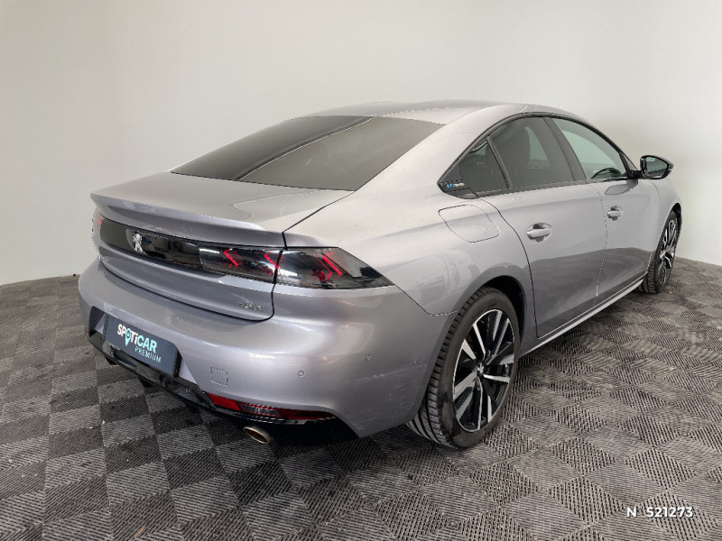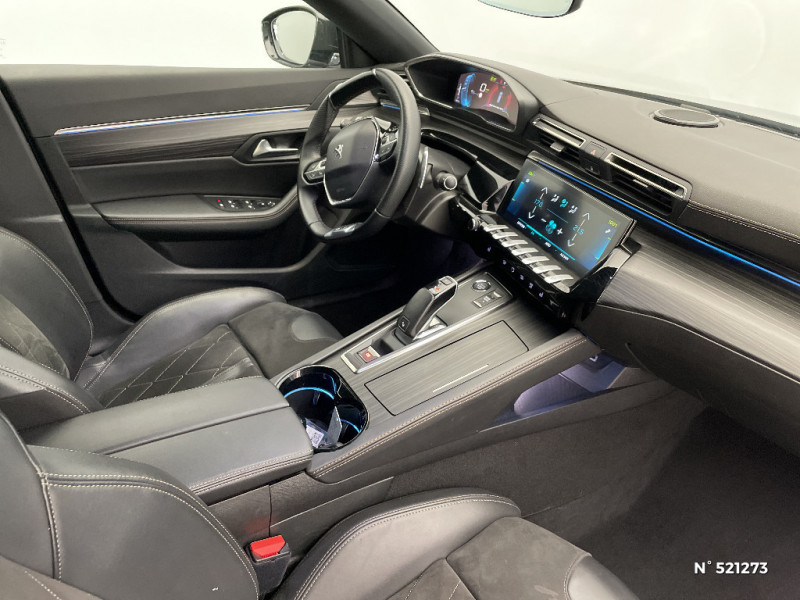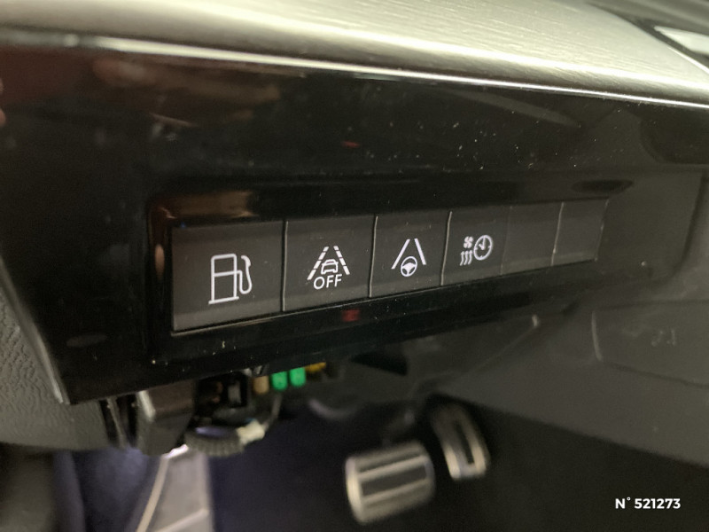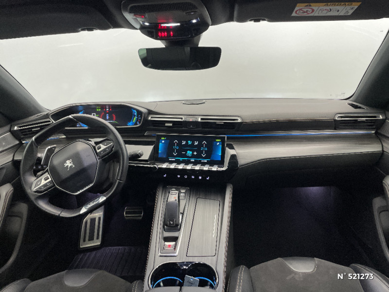 Toggle Switches' chromés (touches 'piano' d'activation des fonctions de l'écran tactile) / Jupe de pare-chocs AR noir brillante / Eclairage d'ambiance bleu sur planche de bord, panneaux de porte et console centrale / Capacité batterie 11,6 kWh / Pré-conditionnement thermique via MyPeugeot ou l'écran central / Système d'alerte sonore du véhicule émis à faible allure en roulage électrique, audible depuis l'extérieur pour la sécurité des piétons / Projecteurs Full LED avec correction automatique de site, clignotants AV à LED et éclairage en virage statique / Ceintures de sécurité AV à enrouleurs à prétension pyrotechnique et limiteur d'efforts / Essuie-vitre AV avec système de lavage "Magic Wash" (gicleurs intégrés aux balais) / Habitacle et ciel de pavillon noir / Surtapis AV et AR noirs avec double surpiqûre aikinite / Calandre à damiers dark chrome et contour noir brillant / Pack Visibilité / Driver Sport Pack / Commutation automatique des feux de route / Détection de sous-gonflage indirecte / Fonction DAB (Radio Numérique Terrestre) / Alerte attention conducteur / Lève-vitres AV et AR électriques séquentiels avec antipincement / Active Suspension Control / Système HI-FI Premium FOCAL / Airbags frontaux conducteur et passager adaptatifs (passager neutralisable par clé), airbags latéraux conducteur et passager AV, airbags rideaux de tête aux places AV et AR / Feux 3D Full LED adaptatifs / Full Park Assist / Commande de verrouillage à distance / Freinage d'urgence automatique (Active Safety Brake) avec alerte risque de collision (Distance Alert) / Planche de bord surpiquée / Chargeur embarqué 3,7 kW / Câble de recharge mode 2 (8A, 1,8 kW, pour prise domestique standard) / Sélecteur mode de conduite : Electric/Sport/HYBRID / Trappe de recharge électrique (aile AR gauche) avec éclairage d'accueil et témoins lumineux de charge programmable / Badge "HYBRID", sur custode AR et volet de coffre / Fonctions Mirror Screen (Apple Carplay/Android Auto) / Avertisseur de temps de conduite / Eclairage intérieur à LED étendu Eclairage intérieur LED + zone coffre (x2), pare-soleil, accoudoir central, porte-gobelets, caves à pieds / Système HI-FI Premium FOCAL - La signature acoustique franà§aise Woofers / médiums haute-fidélité : Technologie Polyglass, Tweeters TNF : Technologie de dômes inversés en aluminium, Subwoofer : Technologie triple bobine Power Flower 200 mm, Amplification active 12 voies 515 Watts : Technologie hybride Classe AB / Classe D / Banquette 1/3-2/3 avec accoudoir et trappe à skis / Hayon mains libres / Kit de dépannage de pneumatique : compresseur 12 volts, flacon de produit de colmatage, anneau de remorquage, deux cales de roue, manivelle de frein de stationnement électrique / Câble de recharge mode 2 (10A, 12.3 kW, pour prise domestique standard) / Freinage d'urgence automatique (vidéo et radar) avec alerte sur risque de collision / Sièges AV chauffants avec sièges AGR / Air conditionné automatique bi-zone avec aérateurs aux places AR / Rétroviseur intérieur photosensible sans cadre, avec témoin lumineux de roulage en mode Electric / Seuils de portes AV en Inox / Vitres latérales AR et lunette AR surteintées / Bacs de portes AV floqués / Programme de Stabilité Electronique (ESC) avec ASR, ABS, REF, AFU, CDS et TSM / Boîte à gants floquée et éclairée / Console centrale AV avec 2 porte-gobelets / Direction assistée électrique, colonne de direction réglable en hauteur et profondeur (mécanique) / Frein de stationnement électrique avec aide au démarrage en pente et serrage automatique / Alerte active de franchissement involontaire de ligne et bas côté / Reconnaissance étendue des panneaux (Stop, Sens interdit) / Pourtour de vitres latérales noir brillant / Volant cuir fleur perforé avec bagues chromées et badge GT / Fonction "Mirror Screen" / Navigation 3D connectée avec reconnaissance vocale, SOS & Assistance,Teleservices avec écran 10'' HD et 2 prises USB à l'AV / Rétroviseurs extérieurs électriques, dégivrants et rabattables électriquement avec éclairage d'accueil à LED / Module 2 prises USB de charge pour les passagers AR / Jantes alliage 18" Sperone bi-ton diamantées / Accoudoir central AV à ouverture papillon, avec compartiment de rangement éclairé / Air Quality System (sonde de pollution, couplée à un filtre à charbon actif Haute Efficacité) / Crochets pour cintres aux places AR / Pédalier et repose-pied conducteur en aluminium / Décors de planche de bord, panneaux de portes et faà§ade de console centrale en bois faà§on essence de Zebrano / Aide au maintien de la position dans la voie / 2 prise USB sur console AR / Accès et démarrage mains libres / Capot actif / Ceintures de sécurité AR avec limiteurs d'effort progressifs / Filets aumônières au dos des sièges AV / Aide graphique et sonore au stationnement AR, AV et en latéral Full Park Assist, VisioPark2 / Garnissage Mistral & Alcantara/Mistral / Appuis-tête réglables en hauteur sur les sieges conducteur et passager AV et sur les places AR / Fixations pour 2 sièges enfants ISOFIX, aux places AR, inclus Top Tether / Boitiers de rétroviseurs extérieurs noirs brillants / Rétroviseurs extérieurs photosensibles électriques, dégivrants et rabattables électriquement avec éclairage d'accueil à LED