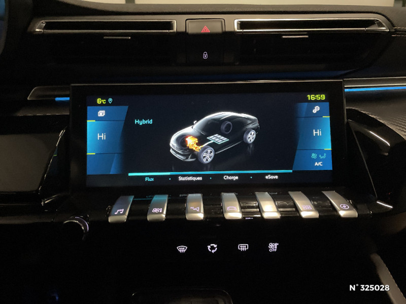 Essuie-vitre AV avec système de lavage "Magic Wash" / Essuie-vitre AV avec système de lavage "Magic Wash" (gicleurs intégrés aux balais) / Feux de recul / Feux 3D Full LED adaptatifs / Filets aumônières au dos des sièges AV / Fixations pour 2 sièges enfants ISOFIX, aux places AR, inclus Top Tether / Fonction DAB (Radio Numérique Terrestre) / Fonction "Mirror Screen" / Fonctions Mirror Screen (Apple Carplay/Android Auto) / Frein de stationnement électrique avec aide au démarrage en pente / Frein de stationnement électrique avec aide au démarrage en pente et serrage automatique / Freinage d'urgence automatique (Active Safety Brake) avec alerte risque de collision (Distance Alert) / Freinage d'urgence automatique (vidéo et radar) avec alerte sur risque de collision / Garnissage TEP Mistral & Tissu "Belomka" Mistral / Habitacle et ciel de pavillon Noir / Jantes alliage 18" Sperone bi-ton diamantées / Jupe de pare-chocs AR noir brillante / Jupes de pare-chocs AR peinte noire et canules d echappement rondes deportees chromees / Commutation automatique des feux de route / Console centrale AV avec 2 porte-gobelets / Console centrale AV avec 2 porte-gobelets rétroéclairés / Contrôle de la charge de la batterie à distance / Crochets pour cintres aux places AR / Décors de planche de bord et panneaux de portes aspect Carbone / Teinte métallisée Bleu Celebes / Teinte métallisée Bleu Encre / Toggle Switches' chromés (touches 'piano' d'activation des fonctions de l'écran tactile) / Trappe à carburant (aile AR droite) avec ouverture depuis l'habitacle / Trappe de recharge électrique (aile AR gauche) avec éclairage d'accueil et témoins lumineux de charge programmable / Visiopark 1 : caméra de recul avec restitution sur l'écran tactile d'une vue AR et d'une vue de dessus de l'environnement AR du véhicule / Vitres latérales AR et lunette AR surteintées / Volant cuir fleur perforé avec bagues chromées et badge GT / 2 prise USB sur console AR / Rétroviseur intérieur photosensible / Rétroviseur intérieur photosensible frameless (sans cadre) avec témoin lumineux d'information roulage mode ELECTRIC / Rétroviseur intérieur photosensible sans cadre, avec témoin lumineux de roulage en mode Electric / Rétroviseurs extérieurs électriques, dégivrants et rabattables électriquement avec éclairage d'accueil à LED / Rétroviseurs extérieurs photosensibles électriques, dégivrants et rabattables électriquement avec éclairage d'accueil à LED / Sélecteur de modes de conduite (Electric, Hybrid, Sport) / Sélecteur mode de conduite : Electric/Sport/HYBRID / Seuils de portes AV en Inox / Sièges AV mécaniques à réglage lombaire électrique / Sièges AV mécaniques à réglage manuel en hauteur / Surtapis AV et AR noirs avec double surpiqûre aikinite / Système d'alerte sonore du véhicule émis à faible allure en roulage électrique, audible depuis l'extérieur pour la sécurité des piétons / Pré-chauffage / climatisation du véhicule à distance / Pré-conditionnement thermique via MyPeugeot ou l'écran central / Programme de Stabilité Electronique (ESC) avec ASR, ABS, REF, AFU, CDS et TSM / Projecteurs Full LED avec correction automatique de site, clignotants AV à LED et éclairage en virage statique / Projecteurs halogènes à l'AV avec feux diurnes à LED / Reconnaissance étendue des panneaux (Stop, Sens interdit) / Détection de sous-gonflage indirecte / Aide graphique et sonore au stationnement AV et AR, camera de recul avec restitution sur l ecran tactile d une vue AR et d une vue de dessus de l environnement AR du vehicule(Visiopark 1) / Accès et démarrage mains libres + Hayon mains libres / Accoudoir central AV à ouverture papillon, avec compartiment de rangement éclairé / Aide au maintien de la position dans la voie (conduite semi-autonome) / Aide graphique et sonore au stationnement AV et AR / Accès et démarrage mains libres / Kit de dépannage de pneumatique / Kit de dépannage de pneumatique : compresseur 12 volts, flacon de produit de colmatage, anneau de remorquage, deux cales de roue, manivelle de frein de stationnement électrique / Lève-vitres AV/AR électriques et séquentiels avec antipincement / Module 2 prises USB de charge pour les passagers AR / Navigation 3D connectée avec reconnaissance vocale, SOS & Assistance, Teleservices avec écran 10'' et 2 prises USB à l'AV, Fonction DAB, Pack Alertes Zones de Danger / Navigation 3D connectée avec reconnaissance vocale, SOS & Assistance,Teleservices avec écran 10'' HD et 2 prises USB à l'AV / Pack Drive Assist Plus / Pack Safety Plus / Pack Visibilité / Pédalier et repose-pied conducteur en aluminium / Peugeot Full LED Technology / Peugeot Full LED Technology / Peugeot i-Cockpit avec combiné tête haute numérique reconfigurable, écran tactile capacitif 10" et volant compact multi-fonctions / Planche de bord surpiquée / Pourtour de vitres latérales noir brillant / Direction assistée électrique, colonne de direction réglable en hauteur et profondeur (mécanique) / Driver Sport Pack / Eclairage d'ambiance bleu sur planche de bord, panneaux de porte et console centrale / Eclairage intérieur à LED étendu Eclairage intérieur LED + zone coffre (x2), pare-soleil, accoudoir central, porte-gobelets, caves à pieds / Ecran tactile capacitif 10" et 2 prises USB AV / Air conditionné automatique bi-zone avec aérateurs aux AR / Air conditionné automatique bi-zone avec aérateurs aux places AR / Air Quality System (sonde de pollution, couplée à un filtre à charbon actif Haute Efficacité) / Airbags frontaux conducteur et passager adaptatifs (passager neutralisable par clé), airbags latéraux conducteur et passager AV.airbags rideaux de tête aux places AV/AR / Alerte active de franchissement involontaire de ligne et bas côté / Alerte attention conducteur / Appuis-tête réglables en hauteur sur les sieges conducteur et passager AV et sur les places AR / AVAS (système d'al