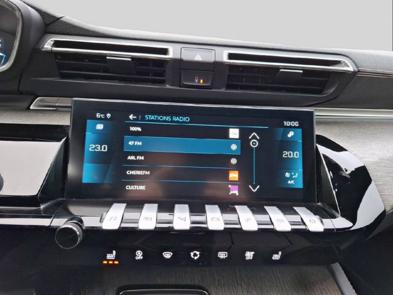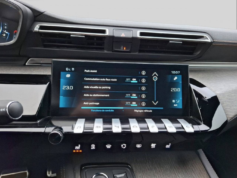 2 prise USB sur console AR / Accès et démarrage mains libres / Accoudoir central AV à ouverture papillon, avec compartiment de rangement éclairé / Aide au maintien de la position dans la voie (conduite semi-autonome) / Aide graphique et sonore au stationnement AR, AV et en latéral Full Park Assist, VisioPark2 / Airbags frontaux conducteur et passager adaptatifs (passager neutralisable par clé), airbags latéraux conducteur et passager AV.airbags rideaux de tête aux places AV/AR / Air conditionné automatique bi-zone avec aérateurs aux places AR / Air Quality System (sonde de pollution, couplée à un filtre à charbon actif Haute Efficacité) / Alerte active de franchissement involontaire de ligne et bas côté / Alerte attention conducteur / Appuis-tête réglables en hauteur sur les sieges conducteur et passager AV et sur les places AR / Avertisseur de temps de conduite / Bacs de portes AV floqués / Banquette 1/3-2/3 avec accoudoir et trappe à skis / Boîte à gants floquée et éclairée / Boitiers de rétroviseurs extérieurs noirs brillants / Calandre à damiers dark chrome et contour noir brillant / Caméra AV / Capot actif / Ceintures de sécurité AR avec limiteurs d'effort progressifs / Ceintures de sécurité AV à enrouleurs à prétension pyrotechnique et limiteur d'efforts / Commande de verrouillage à distance / Commutation automatique des feux de route / Console centrale AV avec 2 porte-gobelets / Crochets pour cintres aux places AR / Décors de planche de bord, panneaux de portes et façade de console centrale en bois façon essence de Zebrano / Détection de sous-gonflage indirecte / Direction assistée électrique, colonne de direction réglable en hauteur et profondeur (mécanique) / Driver Sport Pack / Eclairage d'ambiance bleu sur planche de bord, panneaux de porte et console centrale / Eclairage intérieur à LED étendu Eclairage intérieur LED + zone coffre (x2), pare-soleil, accoudoir central, porte-gobelets, caves à pieds / Essuie-vitre AV avec système de lavage "Magic Wash" (gicleurs intégrés aux balais) / Feux 3D Full LED adaptatifs / Filets aumônières au dos des sièges AV / Fixations pour 2 sièges enfants ISOFIX, aux places AR, inclus Top Tether / Fonction DAB (Radio Numérique Terrestre) / Fonctions Mirror Screen (Apple Carplay/Android Auto) / Freinage d'urgence automatique (vidéo et radar) avec alerte sur risque de collision / Frein de stationnement électrique avec aide au démarrage en pente et serrage automatique / Full Park Assist / Garnissage Mistral & Alcantara/Mistral / Habitacle et ciel de pavillon Noir / Hayon mains libres / Jantes alliage 19" Augusta bi-ton diamantées / Jupe de pare-chocs AR noir brillante / Kit de dépannage de pneumatique : compresseur 12 volts, flacon de produit de colmatage, anneau de remorquage, deux cales de roue, manivelle de frein de stationnement électrique / Lève-vitres AV/AR électriques et séquentiels avec antipincement / Module 2 prises USB de charge pour les passagers AR / Navigation 3D connectée avec reconnaissance vocale, SOS & Assistance,Teleservices avec écran 10'' HD et 2 prises USB à l'AV / Pack Visibilité / Pédalier et repose-pied conducteur en aluminium / Planche de bord surpiquée / Pourtour de vitres latérales noir brillant / Programme de Stabilité Electronique (ESC) avec ASR, ABS, REF, AFU, CDS et TSM / Projecteurs Full LED avec correction automatique de site, clignotants AV à LED et éclairage en virage statique / Reconnaissance étendue des panneaux (Stop, Sens interdit) / Rétroviseur intérieur photosensible frameless - sans cadre / Rétroviseurs extérieurs électriques, dégivrants et rabattables électriquement avec éclairage d'accueil à LED / Rétroviseurs extérieurs photosensibles électriques, dégivrants et rabattables électriquement avec éclairage d'accueil à LED / Sélecteur mode de conduite Eco/Normal ou Sport / Seuils de portes AV en Inox / Sièges AV chauffants avec sièges AGR / Surtapis AV et AR noirs avec double surpiqûre aikinite / Système HI-FI Premium FOCAL / Système stop & go couplé avec l'assistance au positionnement sur la voie / Toggle Switches' chromés (touches 'piano' d'activation des fonctions de l'écran tactile) / Vitres latérales AR et lunette AR surteintées / Volant cuir fleur perforé avec bagues chromées et badge GT