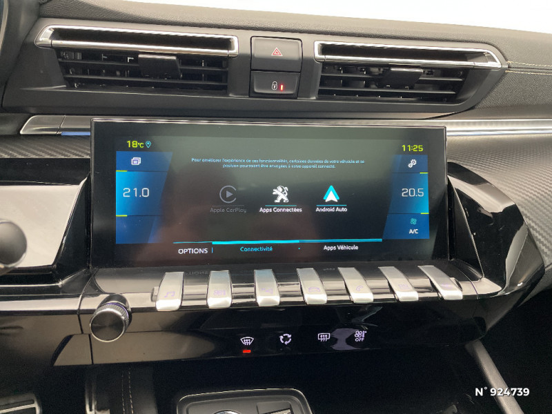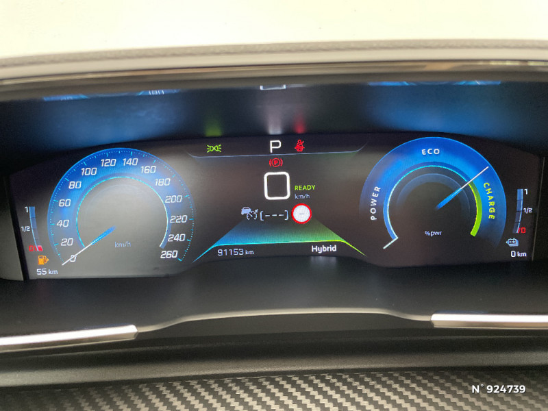 Garnissage TEP Mistral & Tissu "Belomka" Mistral / Accès et démarrage mains libres + Hayon mains libres / Appuis-tête réglables en hauteur sur les sieges conducteur et passager AV et sur les places AR / Fixations pour 2 sièges enfants ISOFIX, aux places AR, inclus Top Tether / Décors de planche de bord et panneaux de portes aspect Carbone / Crochets pour cintres aux places AR / Navigation 3D connectée avec reconnaissance vocale, SOS & Assistance,Teleservices avec écran 10'' HD et 2 prises USB à l'AV / Air Quality System (sonde de pollution, couplée à un filtre à charbon actif Haute Efficacité) / Accoudoir central AV à ouverture papillon, avec compartiment de rangement éclairé / Vitres latérales AR et lunette AR surteintées / Aide graphique et sonore au stationnement AV et AR, camera de recul avec restitution sur l ecran tactile d une vue AR et d une vue de dessus de l environnement AR du vehicule(Visiopark 1) / Module 2 prises USB de charge pour les passagers AR / Rétroviseur intérieur photosensible frameless (sans cadre) avec témoin lumineux d'information roulage mode ELECTRIC / Console centrale AV avec 2 porte-gobelets rétroéclairés / Essuie-vitre AV avec système de lavage "Magic Wash" / Direction assistée électrique, colonne de direction réglable en hauteur et profondeur (mécanique) / Peugeot Full LED Technology / Projecteurs halogènes à l'AV avec feux diurnes à LED / Visiopark 1 : caméra de recul avec restitution sur l'écran tactile d'une vue AR et d'une vue de dessus de l'environnement AR du véhicule / Airbags frontaux conducteur et passager adaptatifs (passager neutralisable par clé), airbags latéraux conducteur et passager AV, airbags rideaux de tête aux places AV et AR / Frein de stationnement électrique avec aide au démarrage en pente / Détection de sous-gonflage indirecte / Boîte à gants floquée et éclairée / Accès et démarrage mains libres / Pack Visibilité / Seuils de portes AV en Inox / Pack Drive Assist Plus / 2 prise USB sur console AR / Pédalier et repose-pied conducteur en aluminium / Avertisseur de temps de conduite / Driver Sport Pack / Rétroviseur intérieur photosensible / Programme de Stabilité Electronique (ESC) avec ASR, ABS, REF, AFU, CDS et TSM / Chargeur embarqué 3,7kW : câble de recharge T2 avec prise murale / Commande de verrouillage à distance / Trappe de recharge électrique (aile AR gauche) avec éclairage d'accueil et témoins lumineux de charge programmable / Trappe à carburant (aile AR droite) avec ouverture depuis l'habitacle / Badge "HYBRID", sur custode AR et volet de coffre / Chauffage programmable électrique avec réglage à distance ou grâce à l'écran tactile 10'' HD / Sélecteur de modes (Electric, Hybrid, Sport) / Planche de bord surpiquée / AVAS (système d'alerte sonore du véhicule émis à faible allure en roulage électrique, audible depuis l'extérieur pour la sécurité des piétons) / Pack Safety Plus / Eclairage intérieur à LED étendu Eclairage intérieur LED + zone coffre (x2), pare-soleil, accoudoir central, porte-gobelets, caves à pieds / Ceintures de sécurité AV à enrouleurs à prétension pyrotechnique et limiteur d'efforts / Fonction DAB (Radio Numérique Terrestre) / Calandre à damiers dark chrome et contour noir brillant / Air conditionné automatique bi-zone avec aérateurs aux AR / Volant cuir fleur perforé avec bagues chromées et badge GT / Eclairage d'ambiance bleu sur planche de bord, panneaux de porte et console centrale / Banquette rabattable 1/3 - 2/3 avec accoudoir et trappe à skis / Pourtour de vitres latérales noir brillant / Boitiers de rétroviseurs extérieurs noirs brillants / Rétroviseurs extérieurs photosensibles électriques, dégivrants et rabattables électriquement avec éclairage d'accueil à LED / Contrôle de la charge de la batterie à distance / Pré-chauffage / climatisation du véhicule à distance / Calandre à damier chromé et contour chromé / Habitacle et ciel de pavillon noir / Surtapis AV et AR noirs avec double surpiqûre aikinite / Jupes de pare-chocs AR peinte noire et canules d echappement rondes deportees chromees / Fonction "Mirror Screen" / Ecran tactile capacitif 10" et 2 prises USB AV / Sièges AV mécaniques à réglage manuel en hauteur / Sièges AV mécaniques à réglage lombaire électrique / Feux de recul / Jantes alliage 18" Sperone bi-ton diamantées / Kit de dépannage de pneumatique / Peugeot i-Cockpit avec combiné tête haute numérique reconfigurable, écran tactile capacitif 10" et volant compact multi-fonctions / Bacs de portes AV floqués / Avertisseurs sonore exterieur / Navigation 3D connectée avec reconnaissance vocale, SOS & Assistance, Teleservices avec écran 10'' et 2 prises USB à l'AV, Fonction DAB, Pack Alertes Zones de Danger / ESC intégrant ABS, REF, AFU, CDS et TSM / Lève-vitres AV et AR électriques séquentiels avec antipincement / Ecrous de roues antivol / Teinte métallisée Bleu Celebes / Ceintures de sécurité AR avec limiteurs d'effort progressifs / Filets aumônières au dos des sièges AV / Capot actif / Toggle Switches' chromés (touches 'piano' d'activation des fonctions de l'écran tactile)