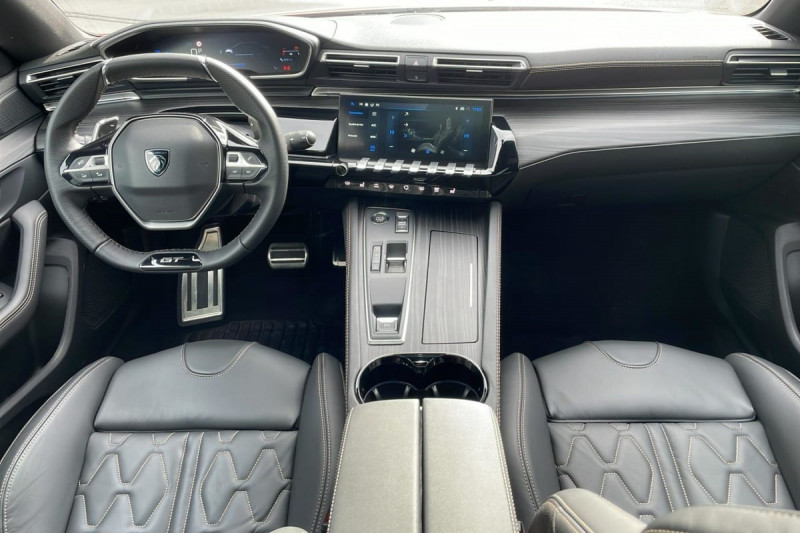 Accès et démarrage mains libres / Pédalier et repose-pied conducteur aluminium / Détection de sous-gonflage indirecte / Avertisseur de temps de conduite / Habitacle et ciel de pavillon Noir Mistral / Air conditionné automatique bi-zone avec aérateurs aux places AR / Capot actif / Vitres latérales AR et lunette AR surteintées / Frein de stationnement électrique avec aide au démarrage en pente et serrage automatique / Volant cuir fleur perforé avec bagues chromées et badge GT / AVAS (système d'alerte sonore du véhicule émis à faible allure en roulage électrique, audible depuis l'extérieur pour la sécurité des piétons) / Fonction DAB (Radio Numérique Terrestre) / Commandes de lève-vitres avec inserts chromés / Toggle Switches' chromés (touches 'piano' d'activation des fonctions de l'écran tactile) / Contours de vitres latérales noir brillant / Régulateur / limiteur de vitesse avec Préconisation Limitation de Vitesse / Fonction Mirror Screen (Apple CarPlay / Android Auto ) sans fil / 6 airbags (Frontaux adaptatifs, latéraux AV, rideaux AV/AR) / Appuis-tête à sécurité optimisée réglables en hauteur (conducteur, passager et AR x3) / Feux arrière Full LED avec indicateurs de direction défilants / Kit de dépannage de pneumatique Avec compresseur 12 volts, flacon de produit de colmatage, anneau de remorquage, cales pour frein de stationnement électrique : Anneau remorquage Compresseur 12 V et flacon de produit de colmatage Cale(s) pour frein de stationnement électrique / Programme de Stabilité Electronique (ESC) Avec antipatinage des roues (ASR), antiblocage des roues (ABS), répartiteur électronique de freinage (REF), assistance au freinage d'urgence (AFU), contrôle dynamique de stabilité (CDS) et contrôle de stabilité de la remorque (TSM) / Projecteurs Peugeot Matrix LED Technology Eclairage adaptatif avec correction automatique de site, 3 modes (Routes, Autoroutes et Brouillard) et feux diurnes 3 griffes à LED intégrés aux projecteurs / Sécurité enfants des vitres AR / Pack Safety Plus Freinage d'urgence automatique par caméra et radar; Alerte risque de collision et Alerte attention conducteur; Alerte de franchissement involontaire de ligne et bas côté; Reconnaissance étendue des panneaux de signalisation; Système de surveillance d'angle mort : Freinage d'urgence automatique avec caméra & radar Système de surveillance d'angle mort Reconnaissance étendue des panneaux de signalisation Alerte risque de collision et Alerte attention conducteur Alerte de franchissement involontaire de ligne et bas côté / Sélecteur de boite de vitesses automatique e-Toggle / Coques et embases de rétroviseurs extérieurs Noir brillant / Signature 'PEUGEOT' sur le bandeau de volet de coffre / Décors de planche de bord et panneaux de portes aspect carbone, et façade de console centrale Noir brillant / Volant cuir fleur avec commandes intégrées / Direction assistée électrique, réglable en hauteur et profondeur (mécanique) / Pack Visibilité Allumage automatique des feux de croisement; Essuie vitre AV à déclenchement automatique; Eclairage d'accompagnement automatique : Eclairage d'accompagnement automatique Allumage automatique des feux de croisement Essuie-vitre AV à déclenchement automatique / Rétroviseurs extérieurs électriques et dégivrants, rabattables électriquement avec éclairage d'accueil à LED, témoins de surveillance d'angles morts / Peugeot i-Cockpit avec combiné numérique tête haute 12,3" / Peugeot Connect SOS & Assistance et Teleservices SOS & Assistance : Appel d'urgence automatique ou manuel par push SOS, et mise en relation directe avec la plateforme d'assistance PEUGEOT (24h/24 7j/7) , Teleservices : Détection du besoin d'une intervention technique ou d'une opération d'entretien périodique et transmission au réseau PEUGEOT pour prise de rendez vous / Prises 12V (x2): x1 dans le rangement fermé de console centrale / x1 dans le coffre / Prises USB-C au 1er rang (x2) Dans le rangement sous l'accoudoir central AV: x1 charge/data / x1 charge / Prises USB-A au 2nd rang (x2) A l'AR de la console centrale: x2 charge / Commande d?ouverture de la trappe à carburant depuis l?habitacle / Thème graphique du combiné et de l'écran tactile exclusif ?Dichroïque? / Trappe de recharge électrique rétroéclairée avec indicateur d'état de charge / Calandre avec motif évolutif de la couleur de la carrosserie / Badges 508 et signature PEUGEOT de couleur Gris Basalte / Eclairage d'ambiance Bleu Glacier sur panneaux de portes AV / Banquette AR rabattable 1/3 - 2/3 avec accoudoir central, trappe à skis / Pack Drive Assist Plus Régulateur de vitesse adaptatif avec fonction Stop & Go, Aide au maintien de la position dans la voie : Régulateur de vitesse adaptatif avec fonction Stop&Go Aide au maintien de la position dans la voie / VisioPark 2 Caméras AV et de recul avec restitution sur l'écran tactile d'une vue AV ou AR et d'une vue de dessus de l'environnement du véhicule sur 360° / Jantes alliage 18" Epherra bi ton diamantées Avec écrous de roues antivol / Lame inférieure de pare chocs AV Noir brillant / Eclairage d'ambiance Bleu Glacier sur la planche de bord, les porte gobelets AV et sous la console centrale / Seuils de portes AV aluminium avec nouvelle signature PEUGEOT Noir brillant / Surpiqures ?Aïkinite? sur accoudoirs, planche de bord et pads de console centrale / Surtapis AV/ AR 'Aïkinite' / Rétroviseurs extérieurs avec indexation de marche AR, rétroviseur intérieur électrochrome sans cadre (rétroviseur extérieur conducteur électrochrome) / Badge "HYBRID" sur volet de coffre / Peugeot i-Connect Advanced - Navigation 3D connectée (cartographie Europe) avec écran tactile 10" HD - Reconnaissance vocale en langage naturel - Services de navigation connectée TomTom (TomTom Traffic, Prix Carburant, Parkings, Météo, Recherche Locale) - Alertes Zones de Danger avec essai gratuit pendant 6 mois inclus (Pack 