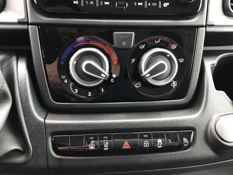 ABS, AFU, ASR et ESP (ESC ameliore avec assistance en cas de vent lateral, controle de stabilite de / Aide au stationnement AR avec avertisseur sonore pour pietons / Alternateur standard (180 A) / Avertisseur sonore de marche AR / Batterie standard (95 Ah) / Boitier telematique autonome (BTA) / Camera de recul avec lignes de guidage actives / Capteur de pression des pneumatiques (TPMS indirect) / Cloison tolee / Crochets d'arrimage lateraux dans l'espace de chargement / Kit de gonflage pneumatiques Fix&Go / Kit de reduction de CO2 / Pack Securite ADAS / Pare-choc AV graine / Porte-gobelets au milieu du tableau de bord / Portes AR a 2 battantes toles / Projecteurs halogene avec feux de circulation diurne / Rappel de bouclage des ceintures de securite / Reservoir a carburant de 90 litres / Reservoir d'ADBlue 19 litres / Roues en acier 15" / Sellerie en tissu crepe noir avec appuie-tete plein / Siege conducteur avec accoudoir, reglable en hauteur et reglage lombaire / Systeme audio 5'' avec radio numerique DAB + Bluetooth + 1 port USB