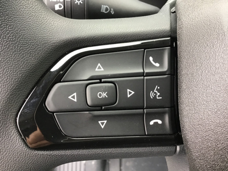 ABS, AFU, ASR et ESP (ESC ameliore avec assistance en cas de vent lateral, controle de stabilite de / Aide au stationnement AR avec avertisseur sonore pour pietons / Alternateur standard (180 A) / Avertisseur sonore de marche AR / Batterie standard (95 Ah) / Boitier telematique autonome (BTA) / Camera de recul avec lignes de guidage actives / Capteur de pression des pneumatiques (TPMS indirect) / Cloison tolee / Crochets d'arrimage lateraux dans l'espace de chargement / Kit de gonflage pneumatiques Fix&Go / Kit de reduction de CO2 / Pack Securite ADAS / Pare-choc AV graine / Porte-gobelets au milieu du tableau de bord / Portes AR a 2 battantes toles / Projecteurs halogene avec feux de circulation diurne / Rappel de bouclage des ceintures de securite / Reservoir a carburant de 90 litres / Reservoir d'ADBlue 19 litres / Roues en acier 15" / Sellerie en tissu crepe noir avec appuie-tete plein / Siege conducteur avec accoudoir, reglable en hauteur et reglage lombaire / Systeme audio 5'' avec radio numerique DAB + Bluetooth + 1 port USB