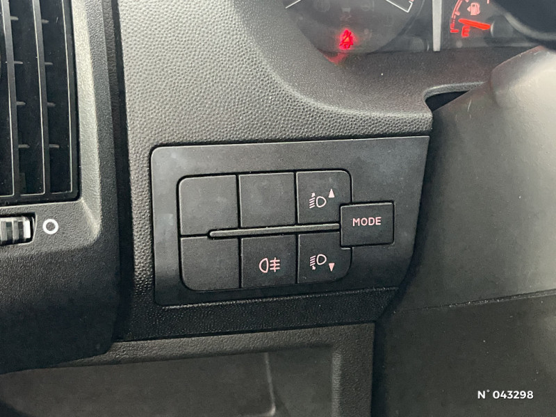 Capucine de rangement / Détection de non bouclage de ceinture conducteur / Préconditionnement radio / Enjoliveurs 15" / Condamnation séparée de la cabine et de la cellule de chargement avec plip / Alternateur renforcé / Cloison de séparation tôlée / Radio CD MP3, écran tactile et Bluetooth®, Prise USB / Porte-gobelets / Tablette écritoire au dos de la banquette passager / Siège conducteur avec réglage lombaire, rangement sous assise, accoudoir / Prise 12V dans l'espace de chargement