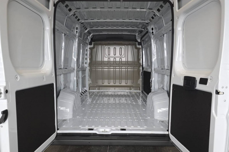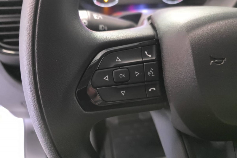 Siège conducteur avec accoudoir, réglable en hauteur et réglage lombaire / Avertisseur sonore de marche AR / Cloison tôlée / Portes AR à 2 battantes tôlés / Sellerie en tissu crêpe noir avec appuie-tête plein / Aide au stationnement AR avec avertisseur sonore pour piétons / ABS, AFU, ASR et ESP (ESC amélioré avec assistance en cas de vent latéral, contrôle de stabilité de la remorque, et freinage après collision) / Alternateur standard (180 A) / Batterie standard (95 Ah) / Capteur de pression des pneumatiques (TPMS indirect) / Crochets d'arrimage latéraux dans l'espace de chargement / Kit de réduction de CO2 - Spoiler central (DAM) - Guide d'air - Grille avec volets pilotés (AGS) / Pare-choc AV grainé / Porte-gobelets au milieu du tableau de bord / Projecteurs halogène avec feux de circulation diurne / Rappel de bouclage des ceintures de sécurité / Boitier télématique autonome (BTA) / Pack Sécurité ADAS - Freinage d'urgence autonome avec détection piéton / cycliste - Aide au maintien dans la voie - Reconnaissance des panneaux de signalisation - Détecteur de fatigue ou d'inattention (attention assist) - Adaptation intelligente de la vitesse : Reconnaissance des panneaux de signalisation Freinage d'urgence autonome avec détection piéton / cycliste Aide au maintien dans la voie Détecteur de fatigue ou d'inattention (attention assist) Adaptation intelligente de la vitesse / Roues en acier 15" / Système audio 5'' avec radio numérique DAB + Bluetooth + 1 port USB / Réservoir d'ADBlue 19 litres / Boîte de vitesse manuelle 6 rapports / Lève vitres AV électriques (séquentiel côté conducteur à la descente et à la montée avec fonction anti-pincement, séquentiel à la descente côté passager) / Réservoir à carburant de 90 litres /