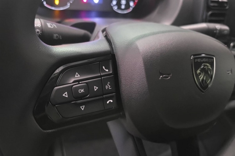 Siège conducteur avec accoudoir, réglable en hauteur et réglage lombaire / Avertisseur sonore de marche AR / Cloison tôlée / Portes AR à 2 battantes tôlés / Sellerie en tissu crêpe noir avec appuie-tête plein / Aide au stationnement AR avec avertisseur sonore pour piétons / ABS, AFU, ASR et ESP (ESC amélioré avec assistance en cas de vent latéral, contrôle de stabilité de la remorque, et freinage après collision) / Batterie standard (95 Ah) / Capteur de pression des pneumatiques (TPMS indirect) / Pare-choc AV grainé / Porte-gobelets au milieu du tableau de bord / Rappel de bouclage des ceintures de sécurité / Boitier télématique autonome (BTA) / Pack Sécurité ADAS : Reconnaissance des panneaux de signalisation Freinage d'urgence autonome avec détection piéton / cycliste Aide au maintien dans la voie Détecteur de fatigue ou d'inattention (attention assist) / Roues en acier 15" / Boîte de vitesse manuelle 6 rapports / Lève vitres AV électriques (séquentiel côté conducteur à la descente et à la montée avec fonction anti-pincement, séquentiel à la descente côté passager) /