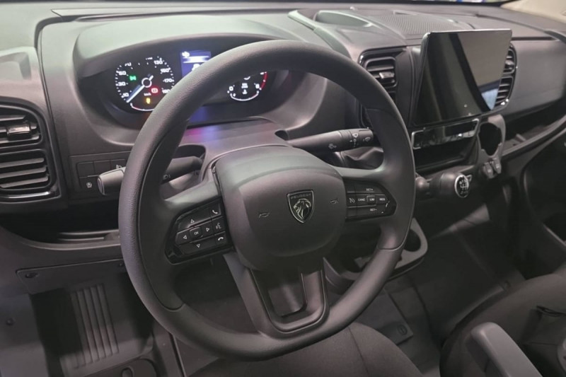 Siège conducteur avec accoudoir, réglable en hauteur et réglage lombaire / Avertisseur sonore de marche AR / Cloison tôlée / Portes AR à 2 battantes tôlés / Sellerie en tissu crêpe noir avec appuie-tête plein / Aide au stationnement AR avec avertisseur sonore pour piétons / ABS, AFU, ASR et ESP (ESC amélioré avec assistance en cas de vent latéral, contrôle de stabilité de la remorque, et freinage après collision) / Batterie standard (95 Ah) / Capteur de pression des pneumatiques (TPMS indirect) / Pare-choc AV grainé / Porte-gobelets au milieu du tableau de bord / Rappel de bouclage des ceintures de sécurité / Boitier télématique autonome (BTA) / Pack Sécurité ADAS : Reconnaissance des panneaux de signalisation Freinage d'urgence autonome avec détection piéton / cycliste Aide au maintien dans la voie Détecteur de fatigue ou d'inattention (attention assist) / Roues en acier 15" / Boîte de vitesse manuelle 6 rapports / Lève vitres AV électriques (séquentiel côté conducteur à la descente et à la montée avec fonction anti-pincement, séquentiel à la descente côté passager) /