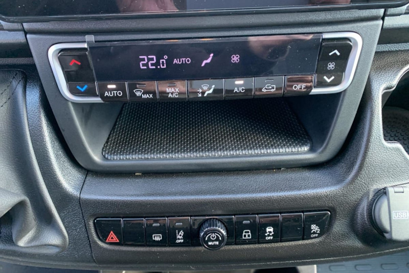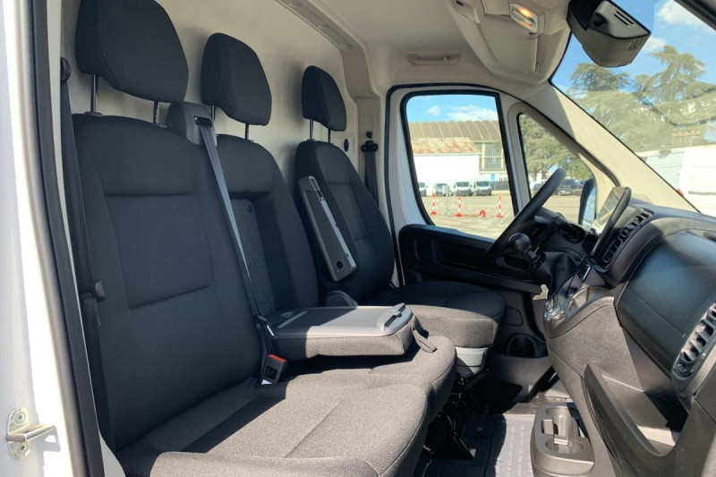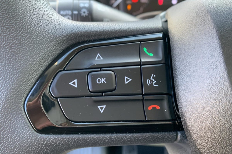 Siège conducteur avec accoudoir, réglable en hauteur et réglage lombaire / Avertisseur sonore de marche AR / Cloison tôlée / Portes AR à 2 battantes tôlés / Sellerie en tissu crêpe noir avec appuie-tête plein / Aide au stationnement AR avec avertisseur sonore pour piétons / ABS, AFU, ASR et ESP (ESC amélioré avec assistance en cas de vent latéral, contrôle de stabilité de la remorque, et freinage après collision) / Alternateur standard (180 A) / Batterie standard (95 Ah) / Capteur de pression des pneumatiques (TPMS indirect) / Pare-choc AV grainé / Rappel de bouclage des ceintures de sécurité / Boitier télématique autonome (BTA) / Pack Sécurité ADAS : Reconnaissance des panneaux de signalisation Freinage d'urgence autonome avec détection piéton / cycliste Aide au maintien dans la voie Détecteur de fatigue ou d'inattention (attention assist) Adaptation intelligente de la vitesse / Roues en acier 15" / Boîte de vitesse manuelle 6 rapports / Lève vitres AV électriques (séquentiel côté conducteur à la descente et à la montée avec fonction anti-pincement, séquentiel à la descente côté passager) / Réservoir à carburant de 90 litres /