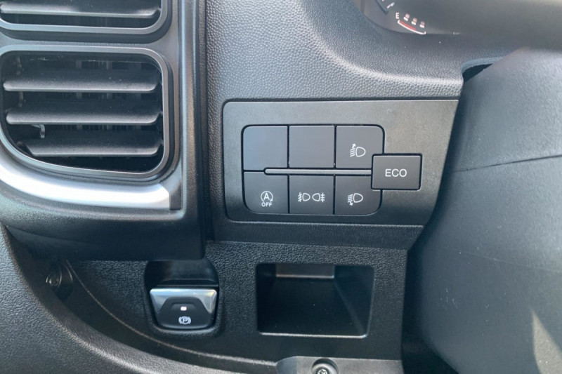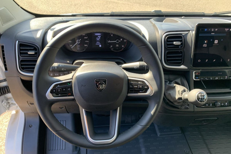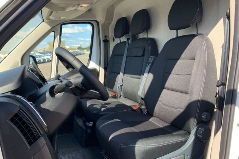 Siège conducteur avec accoudoir, réglable en hauteur et réglage lombaire / Avertisseur sonore de marche AR / Cloison tôlée / Portes AR à 2 battantes tôlés / Aide au stationnement AR avec avertisseur sonore pour piétons / ABS, AFU, ASR et ESP (ESC amélioré avec assistance en cas de vent latéral, contrôle de stabilité de la remorque, et freinage après collision) / Capteur de pression des pneumatiques (TPMS indirect) / Pare-choc AV grainé / Rappel de bouclage des ceintures de sécurité / Boitier télématique autonome (BTA) / Pack Sécurité ADAS : Reconnaissance des panneaux de signalisation Freinage d'urgence autonome avec détection piéton / cycliste Aide au maintien dans la voie Détecteur de fatigue ou d'inattention (attention assist) Adaptation intelligente de la vitesse / Roues en acier 15" / Boîte de vitesse manuelle 6 rapports / Lève vitres AV électriques (séquentiel côté conducteur à la descente et à la montée avec fonction anti-pincement, séquentiel à la descente côté passager) /