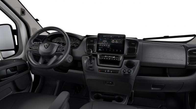 Afu / Aide au stationnement ar avec avertisseur sonore pour piétons / Alternateur standard (180 a) / Asr et esp (esc amélioré avec assistance en cas de vent latéral / Avertisseur sonore de marche ar / Batterie standard (95 ah) / Boîte de vitesse automatique 8 rapports / Boitier télématique autonome (bta) / Capteur de pression des pneumatiques (tpms indirect) / Cloison tôlée / Combiné numéique 7" / Crochets d'arrimage latéraux dans l'espace de chargement / Double port usb (a & c) / Et freinage après collision) / Kit de réduction de co2 - spoiler central (dam) - guide d'air - grille avec volets pilotés (ags) / Lève vitres av électriques (séquentiel côté conducteur à la descente et à la montée avec fonction anti-pincement / Navigation / Pack chantier : roue de secours / Pack sécurité adas - freinage d'urgence autonome avec détection piéton / cycliste - aide au maintien dans la voie - reconnaissance des panneaux de signalisation - détecteur de fatigue ou d'inattention (attention assist) - adaptation intelligente de la vitesse / Pack techno premium : système multimédia écran tactile 10" avec apple carplay et andoid auto sans fil / Pare-choc av grainé / Porte-gobelets au milieu du tableau de bord / Portes ar à 2 battantes tôlés / Projecteurs halogène avec feux de circulation diurne / Rappel de bouclage des ceintures de sécurité / Réglable en hauteur et réglage lombaire / Réservoir à carburant de 90 litres / Réservoir d'adblue 19 litres / Roues en acier 16" / Sellerie en tissu crêpe noir avec appuie-tête plein / Séquentiel à la descente côté passager) / Siège conducteur avec accoudoir / Suspensions ar bilame / Système audio avec radio numérique dab + bluetooth + 1 port usb / Traction + aide à la descente (hdc)