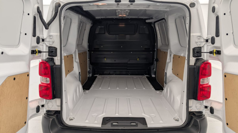 Détection de sous-gonflage indirecte / Cloison pleine tôlée / Allumage automatique feux de croisement et des essuie-vitres AV / Climatisation manuelle régulée en température / Teinte opaque / Siège conducteur individuel avec appui-tête réglable en hauteur et avec accoudoir Réglage : longueur, inclinaison, réhausse et lombaire / 6 anneaux d'arrimage répartis uniformément sur la zone de chargement / Jeu de clefs : 2 plips HF 3 boutons avec fonction sélectivité / Garnissage Tissu bi-ton noir-gris / Jantes tôle 16'' grises avec cabochon noir / Pare-brise feuilleté acoustique / Portes AR battantes tôlées 50/50 à ouverture à 180° / Projecteurs halogènes (H15) avec feux diurne intégré / Poignées de portes extérieures teintés masse / Coques de rétroviseurs extérieurs teintées masse / Pack Sécurité : Reconnaissance des panneaux de vitesse et recommandation Commutation automatique des feux de route Freinage automatique d'urgence avec alerte risque de collision Assistance au maintien dans la voie Détection inattention conducteur / Commandes au volant du système audio et du régulateur-limiteur de vitesse / Boitier télématique (appel d'urgence) / Kit de dépannage provisoire de pneumatiques / / Véhicules équivalents: Trafic, Jumpy