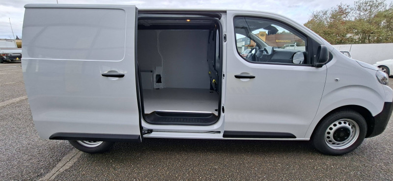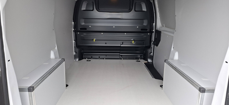 6 anneaux d'arrimage répartis uniformément sur la zone de chargement / Allumage automatique feux de croisement et des essuie-vitres AV / Baguettes latérales teintés masse / Banquette passager 2 places avec appuis-têtes réglables en hauteur avec rangement sous assise / Boitier télématique (appel d'urgence et d'assistance localisées + offres de service connectés)) / Boucliers AV et AR teintés masse / Climatisation manuelle régulée en température / Cloison pleine tôlée / Combiné numérique LCD noir et blanc / Commandes au volant du système audio et du régulateur-limiteur de vitesse / Coques de rétroviseurs extérieurs teintées masse / Détection de sous-gonflage indirecte / Enjoliveur de rail de porte latérale coulissante teintés masse / Garnissage Tissu bi-ton noir-gris / Jantes tôle 16'' grises avec cabochon noir / Jeu de clefs : 2 plips HF 3 boutons avec fonction sélectivité / Kit de dépannage provisoire de pneumatiques (Compresseur 12 V + Cartouche de produit de colmatage) / Pack Sécurité Freinage automatique d'urgence avec alerte risque de collision, Assistance au maintien dans la voie, Commutation automatique des feux de route, Détection inattention conducteur, Reconnaissance des panneaux de vitesse et recommandation / Panneaux latéraux intérieurs rangs 2 et 3 de type Isorel / Pare-brise feuilleté acoustique / Poignées de portes extérieures teintés masse / Portes AR battantes tôlées 50/50 à ouverture à 180° / Prise 12 V (120 W max) dans la boîte à gants / Projecteurs halogènes (H15) avec feux diurne intégré / Radio DAB Bluetooth avec écran tactile 5'' monochrome + 4 HP (2 tweeters + 2 woofers) + 1 prise USB-A / Revêtement de sol TPO dans l'habitacle / Services connectés (4 ans inclus dans le prix du véhicule) Preventive Maintenance: Tableau de bord de la flotte, Alertes sur l'état du véhicule, Suivi de la maintenance (& calendrier), Envoi de rapports périodiques / Siège conducteur individuel avec appui-tête réglable en hauteur et avec accoudoir Réglage : longueur, inclinaison, réhausse et lombaire / Teinte opaque