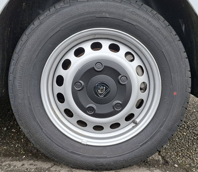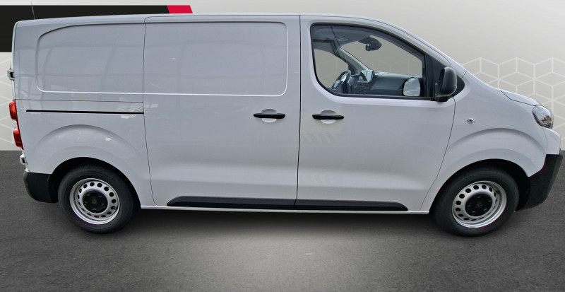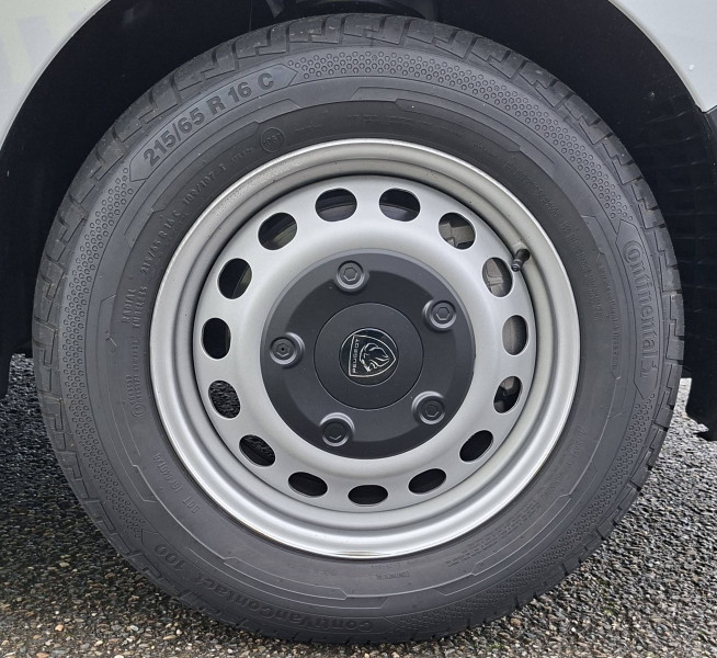 6 anneaux d'arrimage répartis uniformément sur la zone de chargement / Allumage automatique feux de croisement et des essuie-vitres AV / Baguettes latérales teintés masse / Banquette passager 2 places avec appuis-têtes réglables en hauteur avec rangement sous assise / Boitier télématique (appel d'urgence et d'assistance localisées + offres de service connectés)) / Boucliers AV et AR teintés masse / Climatisation manuelle régulée en température / Cloison pleine tôlée / Combiné numérique LCD noir et blanc / Commandes au volant du système audio et du régulateur-limiteur de vitesse / Coques de rétroviseurs extérieurs teintées masse / Détection de sous-gonflage indirecte / Enjoliveur de rail de porte latérale coulissante teintés masse / Garnissage Tissu bi-ton noir-gris / Jantes tôle 16'' grises avec cabochon noir / Jeu de clefs : 2 plips HF 3 boutons avec fonction sélectivité / Kit de dépannage provisoire de pneumatiques (Compresseur 12 V + Cartouche de produit de colmatage) / Pack Sécurité Freinage automatique d'urgence avec alerte risque de collision, Assistance au maintien dans la voie, Commutation automatique des feux de route, Détection inattention conducteur, Reconnaissance des panneaux de vitesse et recommandation / Panneaux latéraux intérieurs rangs 2 et 3 de type Isorel / Pare-brise feuilleté acoustique / Poignées de portes extérieures teintés masse / Portes AR battantes tôlées 50/50 à ouverture à 180° / Prise 12 V (120 W max) dans la boîte à gants / Projecteurs halogènes (H15) avec feux diurne intégré / Radio DAB Bluetooth avec écran tactile 5'' monochrome + 4 HP (2 tweeters + 2 woofers) + 1 prise USB-A / Revêtement de sol TPO dans l'habitacle / Services connectés (4 ans inclus dans le prix du véhicule) Preventive Maintenance: Tableau de bord de la flotte, Alertes sur l'état du véhicule, Suivi de la maintenance (& calendrier), Envoi de rapports périodiques / Siège conducteur individuel avec appui-tête réglable en hauteur et avec accoudoir Réglage : longueur, inclinaison, réhausse et lombaire / Teinte opaque