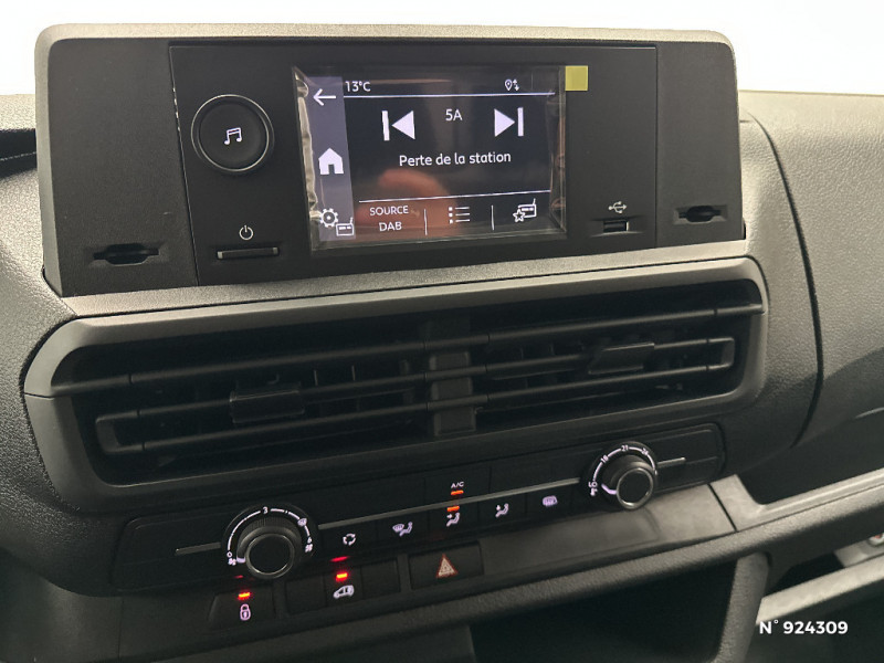 Teinte opaque / Siège conducteur individuel avec appui-tête réglable en hauteur et avec accoudoir Réglage : longueur, inclinaison, réhausse et lombaireCarPlay / Projecteurs halogènes avec feux diurne intégré / Banquette passager 2 places avec appuis-têtes réglables en hauteur avec rangement sous assise / Kit de regonflage pneumatiques (Compresseur 12 V + Cartouche de produit de colmatage). / Services connectés (4 ans inclus dans le prix du véhicule) Preventive Maintenance: Tableau de bord de la flotte, Alertes sur l'état du véhicule, Suivi de la maintenance (& calendrier), Envoi de rapports périodiques / Climatisation manuelle régulée en température / Pack Sécurité Freinage automatique d'urgence avec alerte risque de collision, Assistance au maintien dans la voie, Commutation automatique des feux de route, Détection inattention conducteur, Reconnaissance des panneaux de vitesse et recommandation / Service connecté ''Pack Connect Plus'' (inclus pendant 6 mois) / Service connecté ''Preventive Maintenance'' (inclus pendant 4 ans) / Baguettes latérales noirs teintés masse / Panneaux de garniture de type Isorel en rang 2 et 3 / Commandes au volant du système audio et du régulateur-limiteur de vitesse / Détection de sous-gonflage indirecte / Cloison pleine tôlée / Service connecté ''Pack Connect One'' (inclus pendant 10 ans) / Kit de dépannage provisoire de pneumatiques (Compresseur 12 V + Cartouche de produit de colmatage) / Prise 12V (1200 W max) dans la boîte à gants / Coques de rétroviseurs extérieurs Noir teintées masse / Boucliers AV et AR teintés masse / Garnissage Tissu bi-ton noir-gris / Jantes tôle 16'' grises avec cabochon noir / Allumage automatique feux de croisement et des essuie-vitres AV / Revêtement de sol TPO dans l'habitacle / 6 anneaux d'arrimage répartis uniformément sur la zone de chargement / Combiné numérique LCD noir et blanc / Connectivité via BTA (appel d'urgence et d'assistance localisées + offres services connectés) / Jeu de clefs : 2 plips HF 3 boutons avec fonction sélectivité / Portes AR battantes tôlées 50/50 à ouverture à 180° / Projecteurs halogènes (H15) avec feux diurne intégré / Poignées de portes extérieur teintés masse / Enjoliveur de rail de porte latérale coulissante teintés masse / Baguettes latérales teintés masse / Coques de rétroviseurs extérieurs teintées masse / Radio DAB Bluetooth avec écran tactile 5'' monochrome + 4 HP (2 tweeters + 2 woofers) + 1 prise USB / Pare-brise feuilleté acoustique / Panneaux latéraux intérieurs rangs 2 et 3 de type Isore / Boitier télématique (appel d'urgence et d'assistance localisées + offres de service connectés))