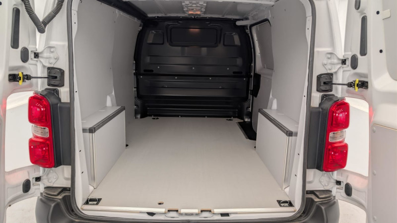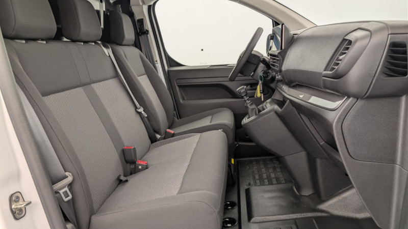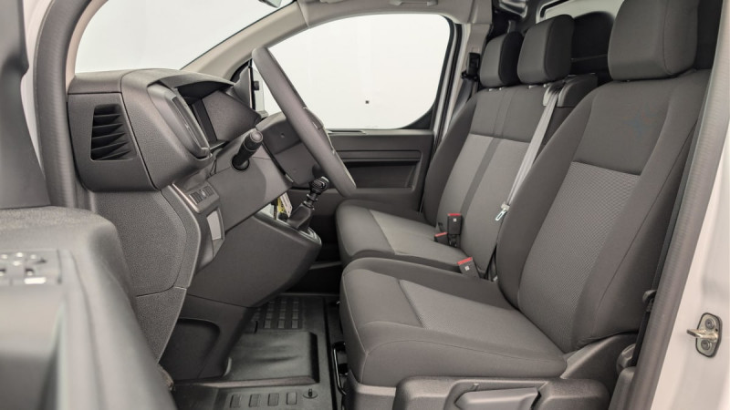 Détection de sous-gonflage indirecte / Projecteurs halogènes avec feux diurne intégré / Coques de rétroviseurs extérieurs noirs teintées masse / Banquette passager 2 places avec appuis-têtes réglables en hauteur avec rangement sous assise / Cloison pleine tôlée / Allumage automatique feux de croisement et des essuie-vitres AV / Climatisation manuelle régulée en température / Teinte opaque / 6 anneaux d'arrimage répartis uniformément sur la zone de chargement / Jeu de clefs : 2 plips HF 3 boutons avec fonction sélectivité / Revêtement de sol TPO dans l'habitacle / Garnissage Tissu bi-ton noir-gris / Jantes tôle 16'' grises avec cabochon noir / Pare-brise feuilleté acoustique / Portes AR battantes tôlées 50/50 à ouverture à 180° / Poignées de portes extérieures teintés masse / Pack Sécurité : Reconnaissance des panneaux de vitesse et recommandation Commutation automatique des feux de route Freinage automatique d'urgence avec alerte risque de collision Assistance au maintien dans la voie Détection inattention conducteur / Commandes au volant du système audio et du régulateur-limiteur de vitesse / Boitier télématique / Baguettes latérales noirs teintés masse / Boucliers AV et AR teintés masse / / Véhicules équivalents: Trafic, Jumpy