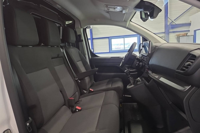 Détection de sous-gonflage indirecte / Projecteurs halogènes avec feux diurne intégré / Coques de rétroviseurs extérieurs noirs teintées masse / Cloison pleine tôlée / Allumage automatique feux de croisement et des essuie-vitres AV / Climatisation manuelle régulée en température / Teinte opaque / 6 anneaux d'arrimage répartis uniformément sur la zone de chargement / Jeu de clefs : 2 plips HF 3 boutons avec fonction sélectivité / Revêtement de sol TPO dans l'habitacle / Garnissage Tissu bi-ton noir-gris / Jantes tôle 16'' grises avec cabochon noir / Pare-brise feuilleté acoustique / Portes AR battantes tôlées 50/50 à ouverture à 180° / Poignées de portes extérieures teintés masse / Pack Sécurité : Reconnaissance des panneaux de vitesse et recommandation Commutation automatique des feux de route Freinage automatique d'urgence avec alerte risque de collision Assistance au maintien dans la voie Détection inattention conducteur / Commandes au volant du système audio et du régulateur-limiteur de vitesse / Boitier télématique / Baguettes latérales noirs teintés masse / Boucliers AV et AR teintés masse / / Véhicules équivalents: Trafic, Jumpy