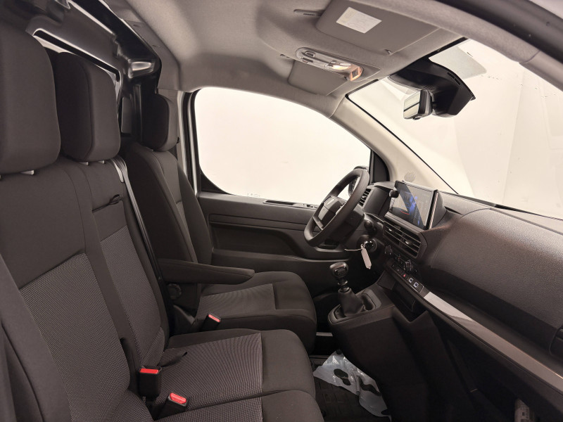 6 anneaux d'arrimage répartis uniformément sur la zone de chargement / Allumage automatique feux de croisement et des essuie-vitres AV / Baguettes latérales teintés masse / Banquette passager 2 places avec appuis-têtes réglables en hauteur avec rangement sous assise / Boitier télématique (appel d'urgence et d'assistance localisées + offres de service connectés)) / Boucliers AV et AR teintés masse / Climatisation manuelle régulée en température / Cloison pleine tôlée / Combiné numérique LCD noir et blanc / Commandes au volant du système audio et du régulateur-limiteur de vitesse / Coques de rétroviseurs extérieurs teintées masse / Détection de sous-gonflage indirecte / Enjoliveur de rail de porte latérale coulissante teintés masse / Garnissage Tissu bi-ton noir-gris / Jantes tôle 16'' grises avec cabochon noir / Jeu de clefs : 2 plips HF 3 boutons avec fonction sélectivité / Kit de dépannage provisoire de pneumatiques (Compresseur 12 V + Cartouche de produit de colmatage) / Pack Sécurité Freinage automatique d'urgence avec alerte risque de collision, Assistance au maintien dans la voie, Commutation automatique des feux de route, Détection inattention conducteur, Reconnaissance des panneaux de vitesse et recommandation / Panneaux latéraux intérieurs rangs 2 et 3 de type Isorel / Pare-brise feuilleté acoustique / Poignées de portes extérieures teintés masse / Portes AR battantes tôlées 50/50 à ouverture à 180° / Prise 12 V (120 W max) dans la boîte à gants / Projecteurs halogènes (H15) avec feux diurne intégré / Radio DAB Bluetooth avec écran tactile 5'' monochrome + 4 HP (2 tweeters + 2 woofers) + 1 prise USB-A / Revêtement de sol TPO dans l'habitacle / Service connecté ''Pack Connect One'' (inclus pendant 10 ans) / Service connecté ''Pack Connect Plus'' (inclus pendant 6 mois) / Service connecté ''Preventive Maintenance'' (inclus pendant 4 ans) / Siège conducteur avec appui-tête réglable en hauteur et avec accoudoir Réglage : longueur, inclinaison, réhausse et lombaire / Teinte opaque