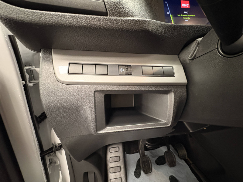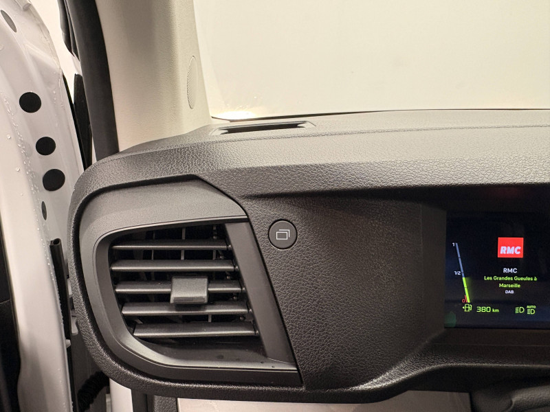 6 anneaux d'arrimage répartis uniformément sur la zone de chargement / Allumage automatique feux de croisement et des essuie-vitres AV / Baguettes latérales teintés masse / Banquette passager 2 places avec appuis-têtes réglables en hauteur avec rangement sous assise / Boitier télématique (appel d'urgence et d'assistance localisées + offres de service connectés)) / Boucliers AV et AR teintés masse / Climatisation manuelle régulée en température / Cloison pleine tôlée / Combiné numérique LCD noir et blanc / Commandes au volant du système audio et du régulateur-limiteur de vitesse / Coques de rétroviseurs extérieurs teintées masse / Détection de sous-gonflage indirecte / Enjoliveur de rail de porte latérale coulissante teintés masse / Garnissage Tissu bi-ton noir-gris / Jantes tôle 16'' grises avec cabochon noir / Jeu de clefs : 2 plips HF 3 boutons avec fonction sélectivité / Kit de dépannage provisoire de pneumatiques (Compresseur 12 V + Cartouche de produit de colmatage) / Pack Sécurité Freinage automatique d'urgence avec alerte risque de collision, Assistance au maintien dans la voie, Commutation automatique des feux de route, Détection inattention conducteur, Reconnaissance des panneaux de vitesse et recommandation / Panneaux latéraux intérieurs rangs 2 et 3 de type Isorel / Pare-brise feuilleté acoustique / Poignées de portes extérieures teintés masse / Portes AR battantes tôlées 50/50 à ouverture à 180° / Prise 12 V (120 W max) dans la boîte à gants / Projecteurs halogènes (H15) avec feux diurne intégré / Radio DAB Bluetooth avec écran tactile 5'' monochrome + 4 HP (2 tweeters + 2 woofers) + 1 prise USB-A / Revêtement de sol TPO dans l'habitacle / Service connecté ''Pack Connect One'' (inclus pendant 10 ans) / Service connecté ''Pack Connect Plus'' (inclus pendant 6 mois) / Service connecté ''Preventive Maintenance'' (inclus pendant 4 ans) / Siège conducteur avec appui-tête réglable en hauteur et avec accoudoir Réglage : longueur, inclinaison, réhausse et lombaire / Teinte opaque