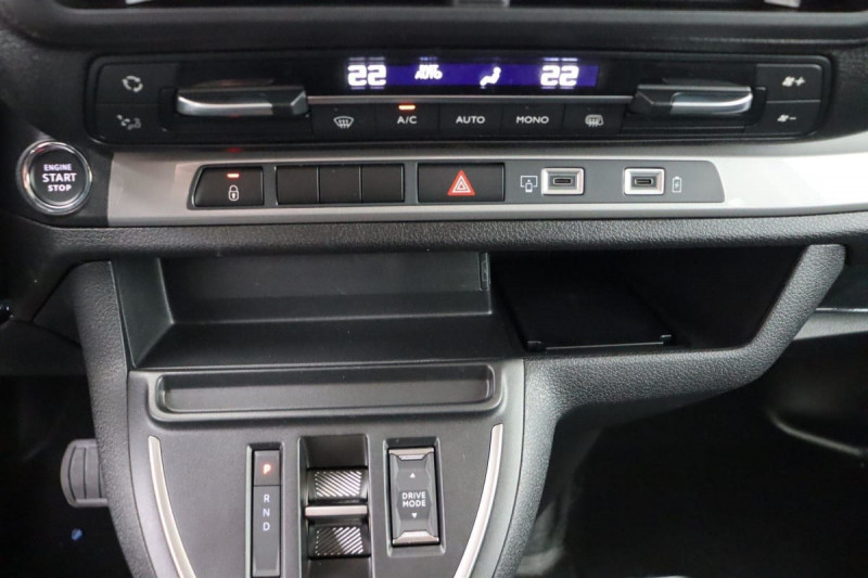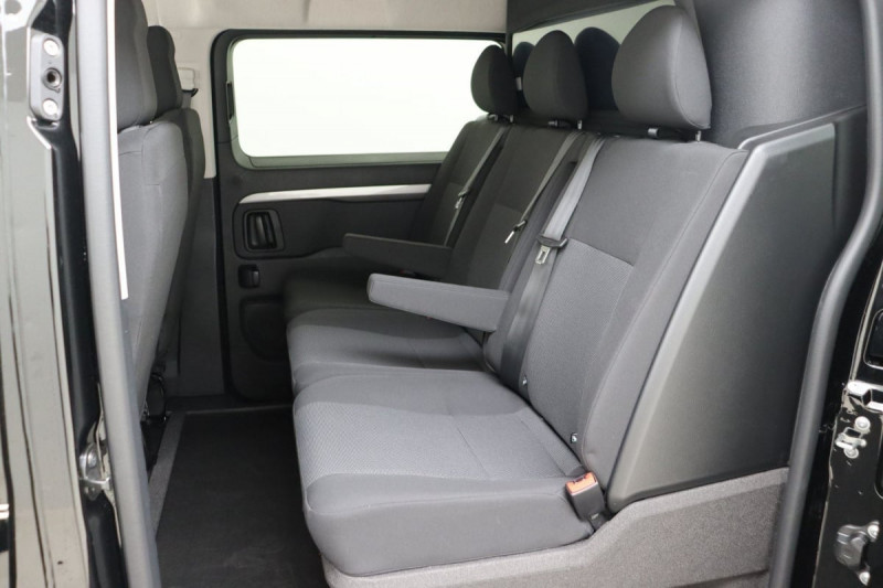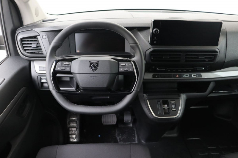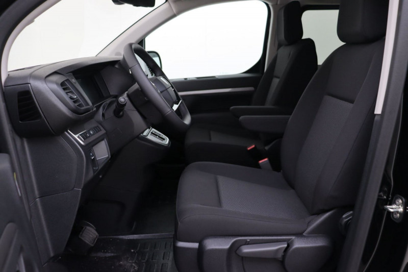 Détection de sous-gonflage indirecte / Frein de stationnement électrique / Projecteurs halogènes avec feux diurne intégré / Revêtement de sol TPO en rangs 1 et 2 / Charge utile majorée La charge utile majorée entraîne une hauteur à vide de la partie AR du véhicule jusqu'à 1,94 m / Allumage automatique feux de croisement et des essuie-vitres AV / Climatisation manuelle régulée en température / Garnitures pavillon habitacle en rang 2 / Sécurité enfants mécanique / Siège conducteur individuel avec appui-tête réglable en hauteur et avec accoudoir Réglage : longueur, inclinaison, réhausse et rabattable (si 1 PLC) ou lombaire (si 2 PLC) / Prise 12 V (120 W max) dans la boîte à gants / Garnissage Tissu bi-ton noir-gris / Pare-brise feuilleté acoustique / Portes AR battantes tôlées 50/50 à ouverture à 180° / Poignées de portes extérieures teintés masse / Banquette fixe 3 places en rang 2 avec appui-tête réglables et 2 accoudoirs, position unique conforme aux réglementations fiscales pays, avec coffre de rangement amovible sous assises gauche et centrale (accessible depuis habitacle) et avec zone pour charge longue sous assise droite (accessible par la zone de chargement). Les assises gauche et centrale de la banquette sont équipées de fixations ISOFIX i-Size & Top Tether / Commandes au volant du système audio et du régulateur-limiteur de vitesse / Boitier télématique / Prédisposition pour Témoin de non-bouclage rang 2 / Boîte de vitesse automatique 8 rapports / Poignée(s) intérieure(s) de porte(s) latérale(s) coulissante(s) / Contrôle de la traction (TCS) / Vitres latérales fixes teintées en rang 2 / Pack Sécurité Freinage automatique d'urgence avec alerte risque de collision : Reconnaissance des panneaux de vitesse et recommandation Commutation automatique des feux de route Freinage automatique d'urgence avec alerte risque de collision Assistance au maintien dans la voie Surveillance inattention conducteur par caméra / / Véhicules équivalents: Trafic, Jumpy