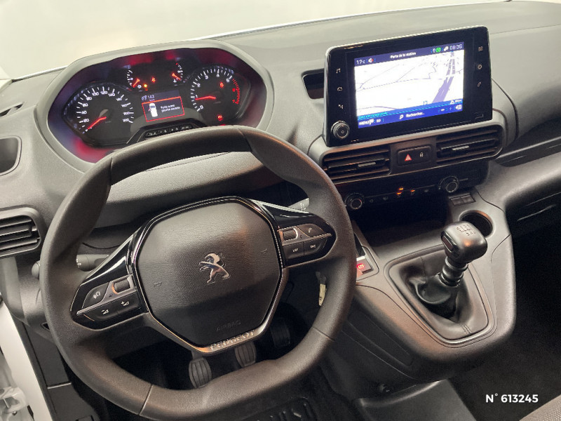 Baguettes de protection latérales teintées masse / Boucliers AV et AR teintés masse / Revêtement moquette dans la cabine / Portes AR battantes tôlées 40/60, ouverture a 180° / Siège conducteur "Confort" avec réglage longueur, hauteur et inclinaison de dossier, réglage réglage lombaire manuel, accoudoir / Peugeot Connect SOS et Assistance / Lève vitres impulsionnels avec rétroviseurs extérieurs électriques, chauffants et rabattables / Capucine / Accoudoir sur siège conducteur / Surroud rear vision caméra de recul, surveillance de l'environnement arrière et latéral passager, restitution dans un écran dédié 5'' à la place du rétroviseur, aide au stationnement avant et arrière. / Détection de sous-gonflage indirecte / Projecteurs a DRL à lampe / Système Audio RDS MP3 Bluetooth avec 2 HP + 2 tweeter + 1 prise USB + radio Numerique Terrestre / 1 plip 3 boutons, 1 clé simple / Prise 12V sur la planche de bord / 6 anneaux d'arrimage universels sur plancher zone de chargement / Navigation 3D Connectée à commande vocale, écran tactile capacitif 8" 1 prise USB en facade, Bluetooth, Mirror Screen, Cartographie Europe, Services de Navigation connectée TomTom® (TomTom® Traffic, Prix Carburant, Parkings, Météo, Recherche Locale), abonnement 3 ans inclus Connexion automatique et permanente via carte SIM intégrée au véhicule / ESP+ABS+ESC+AFUI+ASR+Hill Assist / Teinte opaque Blanc Banquise / Garnissage Tissu Curitiba tri-ton / Volant à commandes intégrées / Frein de stationnement électrique / Pneus Continental ContiPremiumContact 5 - 195/65 R15 - STD / Cloison pleine fixe avec crochet porte habit / Roues tôle grises 15" avec cabochons / Siège passager individuel fixe, dossier fixe, avec grand rangement sous assise basculante