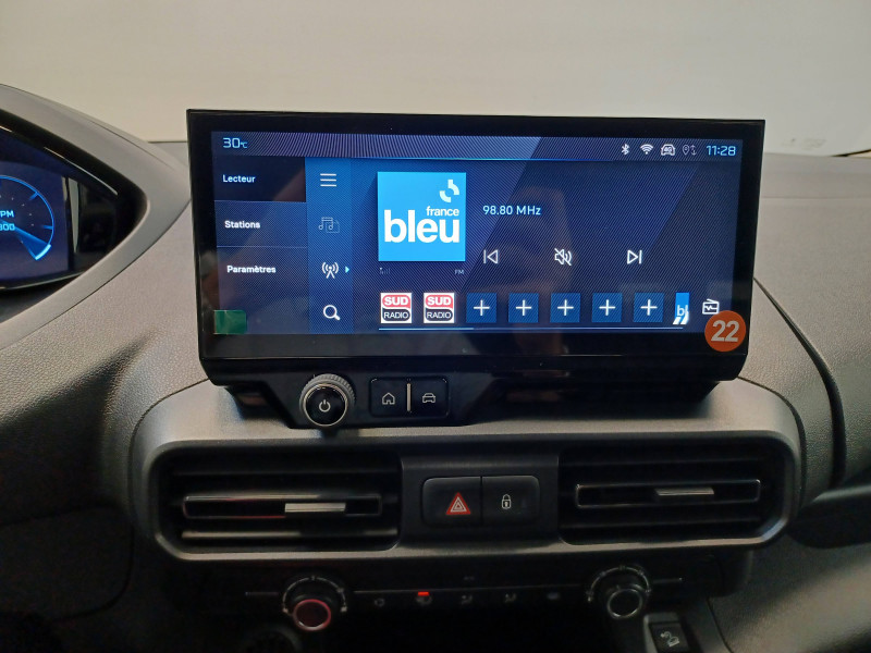 6 anneaux d'arrimage au sol dans la zone de chargement / ABS, AFU, ASR et ESP / Airbags Conducteur et Passager : Frontaux, Latéraux, Rideaux / Boîte de vitesse manuelle 6 rapports / Capucine / Cloison pleine fixe / Commutation automatique des feux de route / Connect Box avec Pack SOS et assistance inclus / Côté passager : Boîte à gants fermée et réfrigérée en partie haute Boîte à gant ouverte en partie basse / Détecteur de sous gonflage / Essuie-vitre AV Magic Wash / Garnissage Tissus Curitiba Triton Meltem / Jantes tôle 15'' grises avec pneumatiques 195/65 R15 90U / Kit de dépannage provisoire de pneumatiques / Pack Safety Alerte risque collision & Freinage d'urgence, Lecture des panneaux de vitesse, Détection & Alerte somnolence, Alerte franchissement de ligne avec correction / Portes AR battantes tôlées 40/60, ouverture à 180° / Preventive Maintenance (abonnement 4 ans inclus) - c´est un dispositif pour surveiller et optimiser les performances des véhicules, garantir leur fiabilité et réduire leurs temps d'arrêt: Tableau de bord de la flotte, Alertes sur l'état du véhicule, Suivi de la maintenance (& calendrier), Envoi de rapports périodiques / Prise 12 V sur la planche de bord / Revêtement de sol en moquette dans l'habitacle / Siège conducteur avec réglage en longueur et dossier inclinable / Siège passager individuel réglable en inclinaison, appuis tête réglable en hauteur / Station d'accueil Smartphone, application radio avec streaming audio (2HP), Kit mains libres Bluetooth, 2 prises USB Type C (charge uniquement)