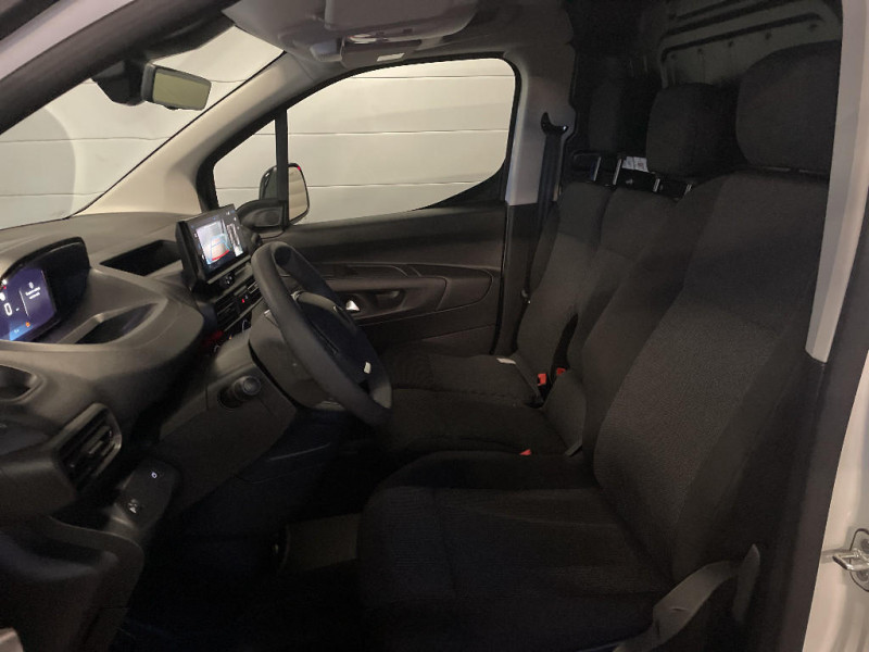 Siège conducteur avec réglage en longueur et dossier inclinable / Siège conducteur confort (avec accoudoir, réglage en hauteur et réglage lombaire) / Siège passager individuel réglable en inclinaison, appuis tête réglable en hauteur / Station d'accueil Smartphone, application radio avec streaming audio (2HP), Kit mains libres Bluetooth, 2 prises USB Type C (charge uniquement) / 6 anneaux d'arrimage au sol dans la zone de chargement / Pack Safety Alerte risque collision & Freinage d'urgence, Lecture des panneaux de vitesse, Détection & Alerte somnolence, Alerte franchissement de ligne avec correction / Portes AR battantes tôlées 60/40, ouverture à 180° / Preventive Maintenance (abonnement 4 ans inclus) - c´est un dispositif pour surveiller et optimiser les performances des véhicules, garantir leur fiabilité et réduire leurs temps d'arrêt: Tableau de bord de la flotte, Alertes sur l'état du véhicule, Suivi de la maintenance (& calendrier), Envoi de rapports périodiques / Prise 12 V sur la planche de bord / Revêtement de sol en moquette dans l'habitacle / ABS, AFU, ASR et ESP / Airbags Conducteur et Passager : Frontaux, Latéraux, Rideaux / Boîte de vitesse manuelle 6 rapports / Capucine / Cloison pleine fixe / Commutation automatique des feux de route / Connect Box avec Pack SOS et assistance inclus / Côté passager : Boîte à gants fermée et réfrigérée en partie haute Boîte à gant ouverte en partie basse / Détecteur de sous gonflage / Essuie-vitre AV Magic Wash / Feux EcoLed feux de route et feux de croisement / Frein de stationnement électrique / Garnissage Tissus Curitiba Triton Meltem / Jantes tôle 15'' grises avec pneumatiques 195/65 R15 91H / Jantes tôle 15'' grises avec pneumatiques 195/65 R15 95H / Kit de dépannage provisoire de pneumatiques