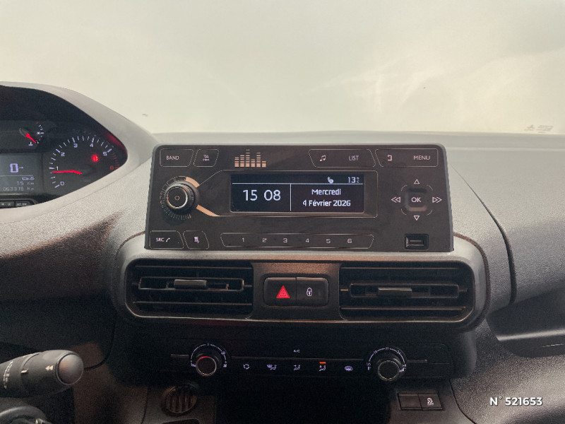 Projecteurs antibrouillards avec éclairage statique d?intersection / Revêtement d?habitacle TPO / Cloison pleine fixe avec crochet porte habit / Frein de stationnement électrique / Roues tôle grises 15" avec cabochons / Projecteurs antibrouillard AV avec éclairage statique d'intersection / 6 anneaux d'arrimage universels sur plancher zone de chargement / Siège conducteur "Confort" avec réglage longueur, hauteur et inclinaison de dossier, réglage réglage lombaire manuel, accoudoir / Système Audio RDS MP3 Bluetooth avec 2 HP + 2 tweeter + 1 prise USB + 1 prise jack / Portes AR battantes tôlées 40/60, ouverture a 180° / Prise 12V sur la planche de bord / Peugeot Connect SOS et Assistance / Capucine / Siège passager individuel avec dossier inclinable / 1 plip 3 boutons, 1 clé simple