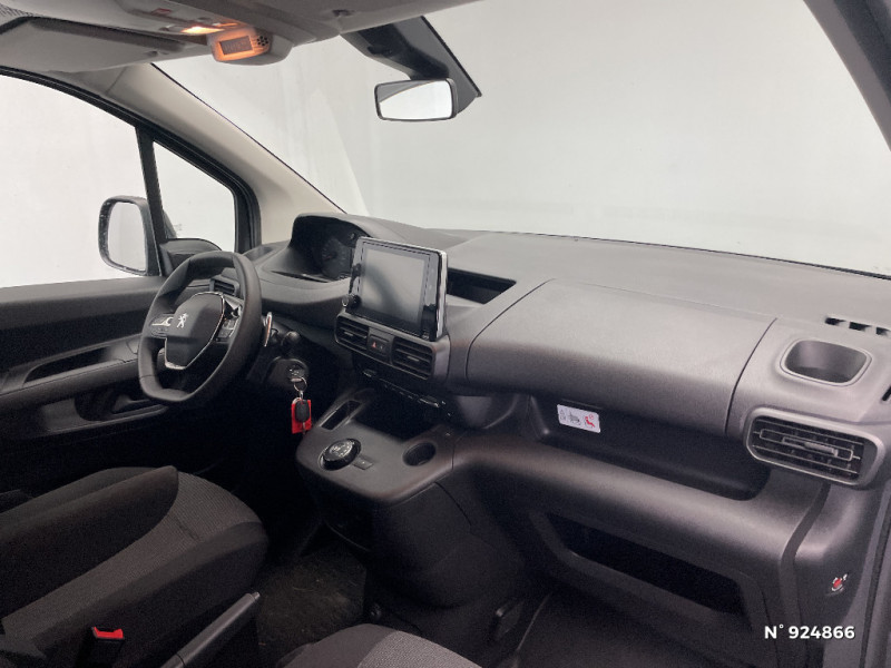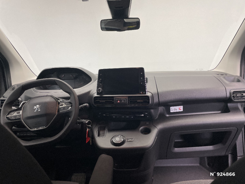 Siège passager individuel escamotable avec réglage en hauteur et inclinaison de dossier, réglage lombaire manuel, accoudoir amovible, / Portes latérales coulissantes droite et gauche avec vitres fixes / Roues tôle grises 16" avec cabochons / Siège conducteur "Confort" avec réglage longueur, hauteur et inclinaison de dossier, réglage réglage lombaire manuel, accoudoir / Cloison mobile grillagée avec trappe pour charges longues / Airbag passager frontal + airbags latéraux conducteur et passager (Thorax-Abdo) / Plancher bois antidérapant 9 mm / Peugeot Connect SOS et Assistance / Capucine / 1 plip 3 boutons, 1 clé simple / Prise 12V sur la planche de bord / Projecteurs a DRL à lampe / ESP+ABS+ESC+AFUI+ASR+Hill Assist / Portes AR battantes vitrées chauffantes 60/40 avec ouverture à 180°/essuie-vitre uniquement à gauche / Boucliers AV et AR teintés masse / Détection de sous-gonflage indirecte / Radio RCE écran 5 pouces (radio fonction DAB : Radio Num Terrestre, 2HP + 2 tweeters, Bluetooth,1USB / 6 anneaux d'arrimage universels sur plancher zone de chargement / Baguettes de protection latérales teintées masse / Teinte opaque Blanc Banquise / Garnissage Tissu Curitiba tri-ton