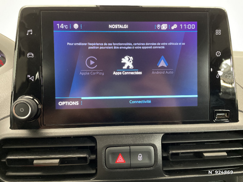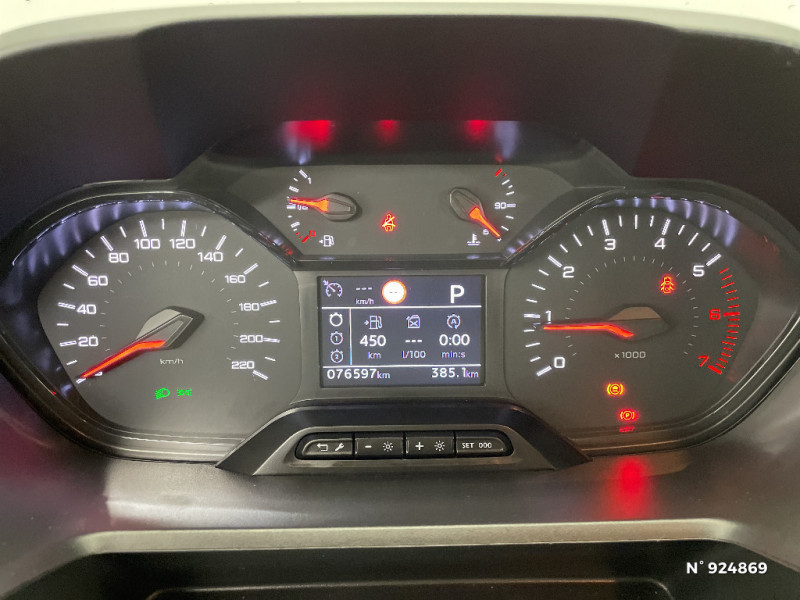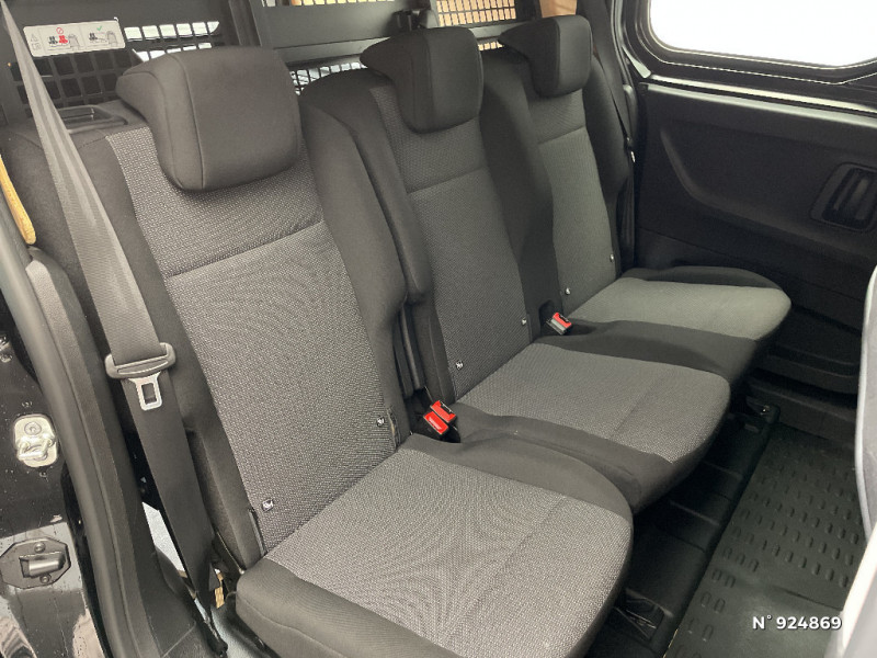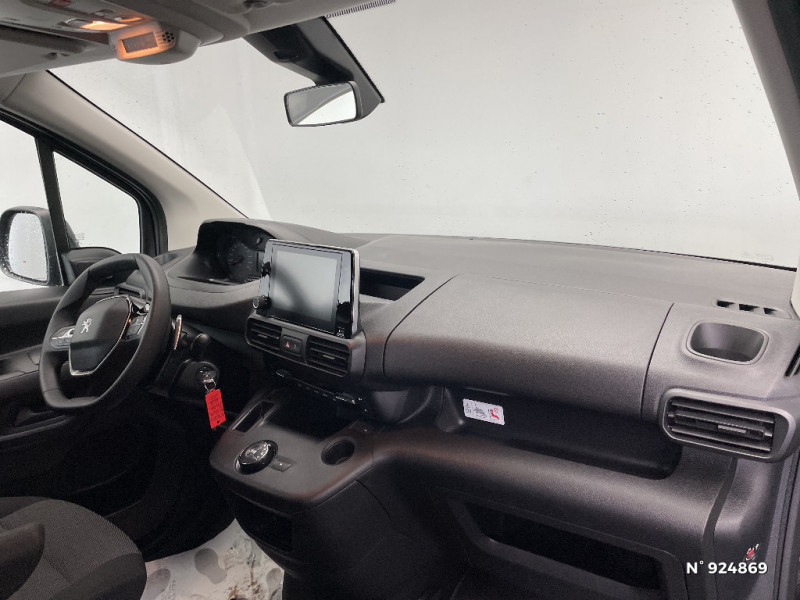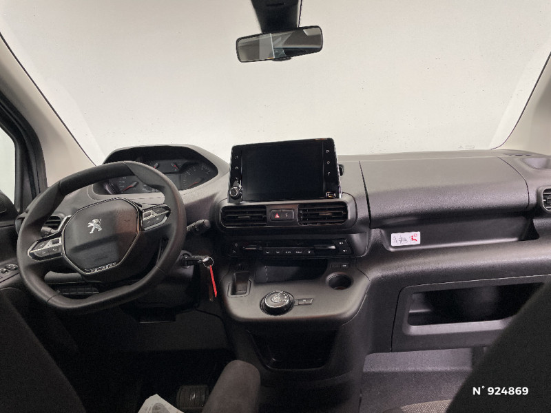 Garnissage Tissu Curitiba tri-ton / Siège passager individuel escamotable avec réglage en hauteur et inclinaison de dossier, réglage lombaire manuel, accoudoir amovible, / Radio RCE écran 5 pouces (radio fonction DAB : Radio Num Terrestre, 2HP + 2 tweeters, Bluetooth,1USB / 6 anneaux d'arrimage universels sur plancher zone de chargement / Baguettes de protection latérales teintées masse / Teinte opaque Blanc Banquise / Boucliers AV et AR teintés masse / Détection de sous-gonflage indirecte / ESP+ABS+ESC+AFUI+ASR+Hill Assist / Portes AR battantes vitrées chauffantes 60/40 avec ouverture à 180°/essuie-vitre uniquement à gauche / 1 plip 3 boutons, 1 clé simple / Prise 12V sur la planche de bord / Projecteurs a DRL à lampe / Peugeot Connect SOS et Assistance / Capucine / Plancher bois antidérapant 9 mm / Airbag passager frontal + airbags latéraux conducteur et passager (Thorax-Abdo) / Cloison mobile grillagée avec trappe pour charges longues / Portes latérales coulissantes droite et gauche avec vitres fixes / Roues tôle grises 16" avec cabochons / Siège conducteur "Confort" avec réglage longueur, hauteur et inclinaison de dossier, réglage réglage lombaire manuel, accoudoir