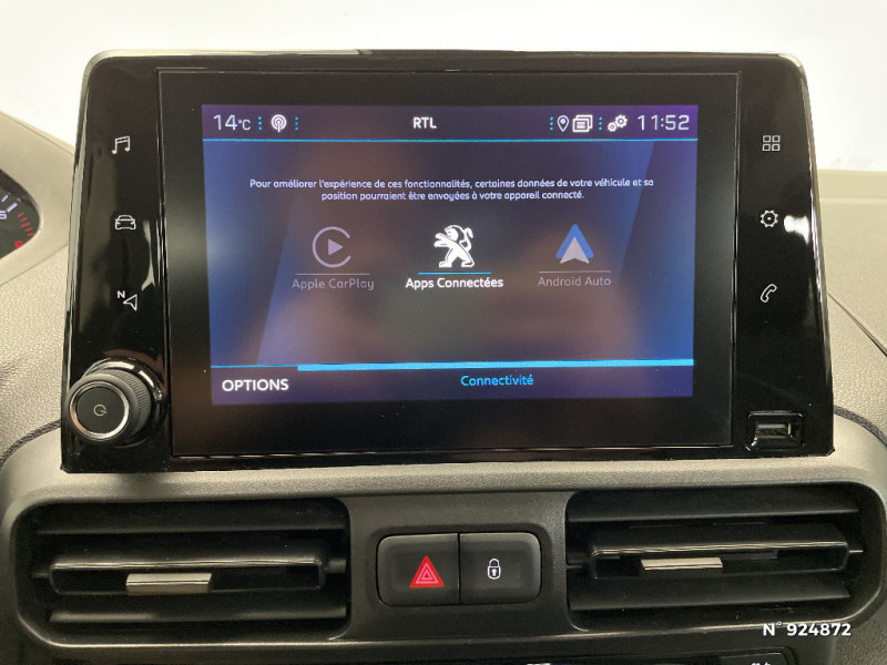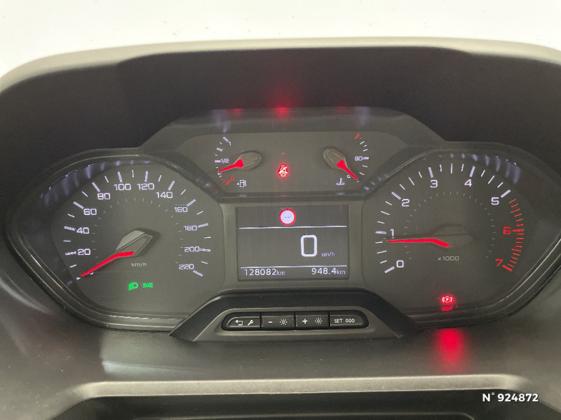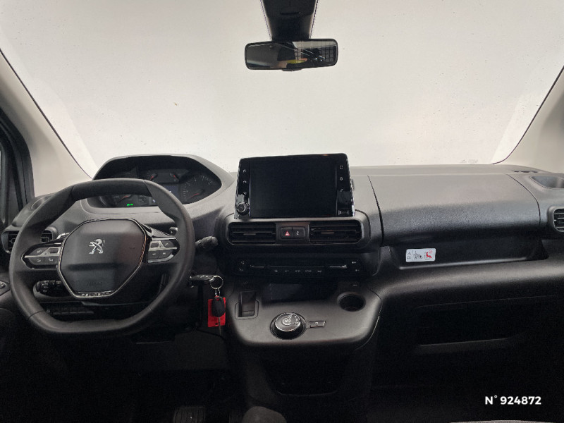 Garnissage Tissu Curitiba tri-ton / Siège passager individuel escamotable avec réglage en hauteur et inclinaison de dossier, réglage lombaire manuel, accoudoir amovible, / Radio RCE écran 5 pouces (radio fonction DAB : Radio Num Terrestre, 2HP + 2 tweeters, Bluetooth,1USB / 6 anneaux d'arrimage universels sur plancher zone de chargement / Baguettes de protection latérales teintées masse / Teinte opaque Blanc Banquise / Détection de sous-gonflage indirecte / Boucliers AV et AR teintés masse / ESP+ABS+ESC+AFUI+ASR+Hill Assist / Portes AR battantes vitrées chauffantes 60/40 avec ouverture à 180°/essuie-vitre uniquement à gauche / 1 plip 3 boutons, 1 clé simple / Prise 12V sur la planche de bord / Projecteurs a DRL à lampe / Peugeot Connect SOS et Assistance / Capucine / Plancher bois antidérapant 9 mm / Airbag passager frontal + airbags latéraux conducteur et passager (Thorax-Abdo) / Cloison mobile grillagée avec trappe pour charges longues / Portes latérales coulissantes droite et gauche avec vitres fixes / Roues tôle grises 16" avec cabochons / Siège conducteur "Confort" avec réglage longueur, hauteur et inclinaison de dossier, réglage réglage lombaire manuel, accoudoir