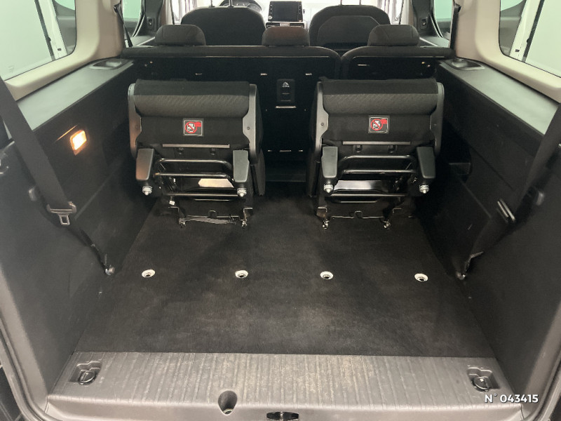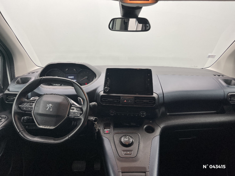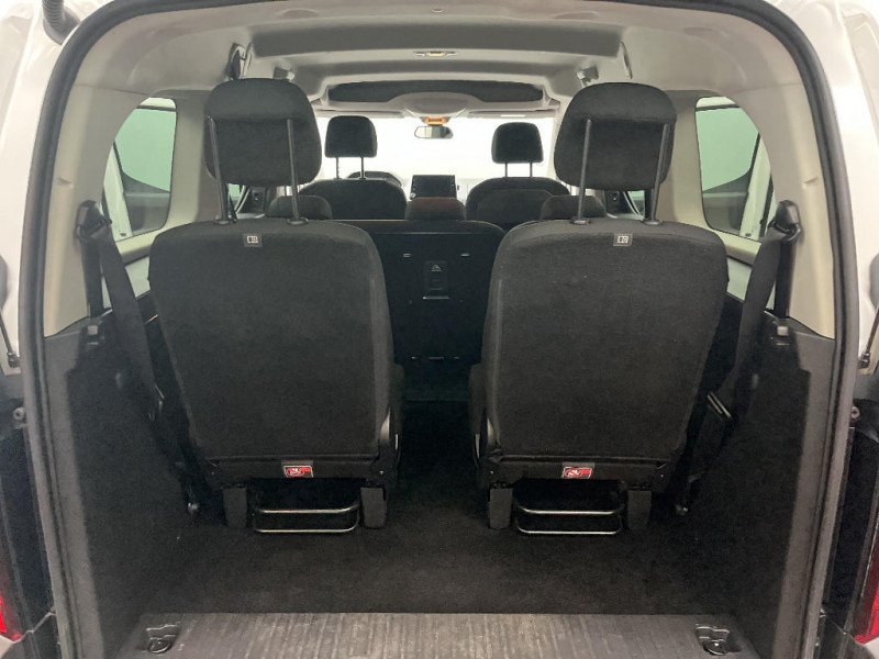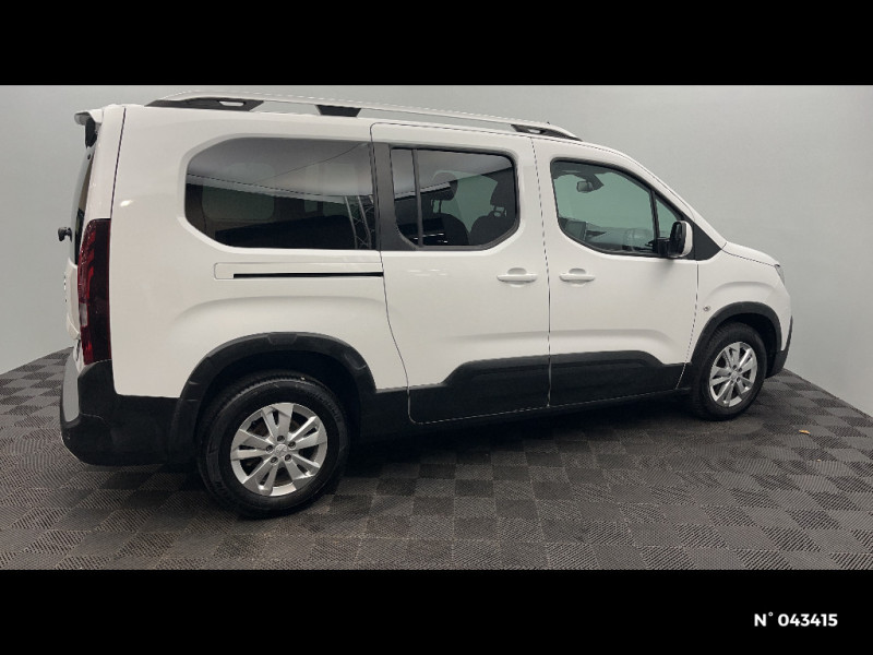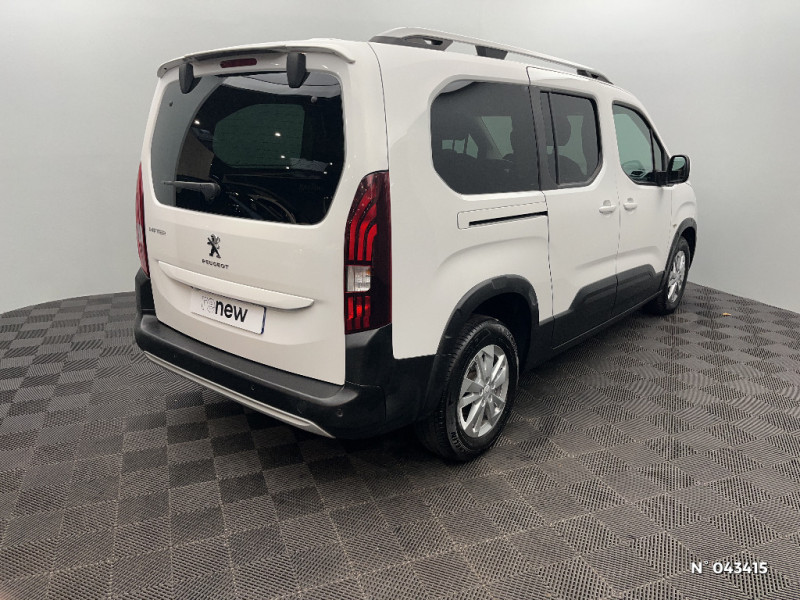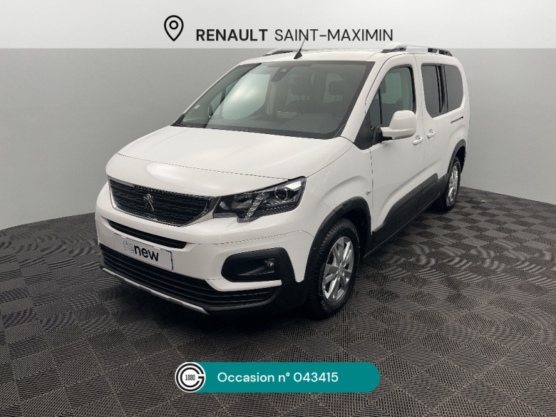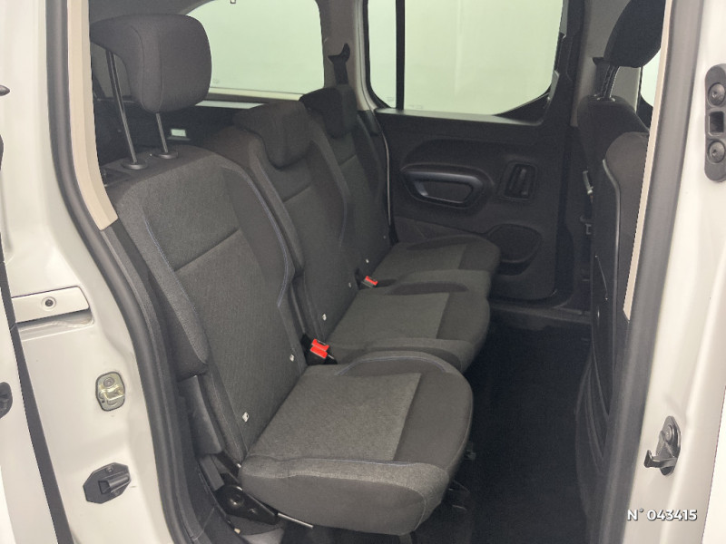 Barres de toit longitudinales en aluminium / ESP : ABS (antiblocage de roues) + AFUI (assistance au freinage d'urgence intelligent) + ESC (correcteur de trajectoire) + ASR avec push inhibiteur (antipatinage à l'accelération) + Hill Assist (aide au démarrage en côte) / Airbags frontaux et latéraux (thorax et abdominaux) conducteur et passager AV,rideaux AV/AR (rang 2) / Combiné analogique avec matrice couleur 3,5'' TFT / Commandes d'ouverture extérieure de portes, coques de rétroviseurs extérieurs et enjoliveur de plaque de police AR couleur caisse / Pare-chocs AV couleur caisse, sabots AV et AR Gris Aluminé / Projecteurs avec feux diurnes avec DRL à LED et module elliptique / Pack Visibilité / 4 anneaux d'arrimage sur plancher de coffre / Portes latérales coulissantes droite et gauche avec vitres descendantes, vitres fixes en rang 3, vitrages AR teintés / Tendelet cache bagages / Télécommande 3 boutons + clé standard / Banquette AR (rang2) escamotable 2/3 1/3 avec fixations Isofix à chaque place / Console haute avec rangements, prise USB de recharge sous les aérateurs AR (en rang 2) / Siège conducteur réglable en longueur, hauteur et inclinaison, appui tête réglable en hauter, réglage lombaire manuel, accoudoir, rangement sous siège, tablette aviation et aumonière / Siège passager escamotable, appui tête réglable en hauteur, accoudoir amovible, tablette aviation et aumonière / Rétroviseurs électriques chauffants, rabattables / 2 HP sur portes AV, 2 HP sur portes latérales coulissantes, 2 tweeters sur goussets de rétroviseurs / Teinte opaque Blanc Banquise / 1 prise USB en faà§ade / Jantes alliage 16'' Gris éclat TARANAKI pneus MICHELIN Primacy 3 215/65 R16 UBRR / Radio connectée, écran tactile capacitif 8'' couleur, Fonction DAB 1 prise USB en facade, Bluetooth, Mirror Screen / Garnissage tissu Caracal / VisioPark 180°: Caméra de recul, Aide au stationnement AV et Surveillance Angle Mort / Lunette AR ouvrant chauffante et vitrages AR surteintés / Sièges individuels AR (en rang 3) escamotables, 2 portes gobelets, prise 12V en rang 3 / Visiopark 1 : caméra de recul avec restitution sur l'écran tactile d'une vue AR 180°, et d'une vue de dessus de l'environnement AR du véhicule / Rétroviseur intérieur électrochrome / Sécurité enfants électrique / Capucine de rangement / Kit de dépannage de pneumatique / Pack Safety Plus / Frein de stationnement électrique / Détection de sous-gonflage indirecte / Calandre chromée / Mirror Screen / PEUGEOT i-Cockpit