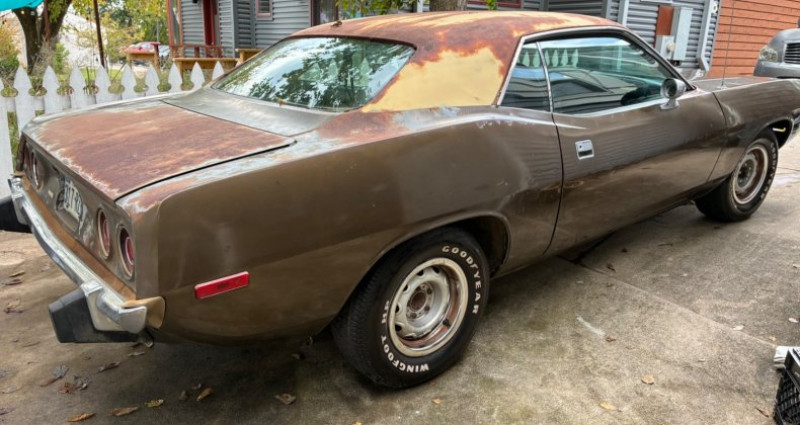 Cet automobile en question est un Plymouth Barracuda de 1974 équipé d'un moteur 318 avec deux carburateurs à deux corps et d'une boîte automatique à 904 vitesses. Il possède un titre de propriété du Texas qui paraît être original avec le code de couleur KL8, Dark Moonstone. Le véhicule démarre, fonctionne correctement et roule avec facilité. Les phares et les aubes de nettoyage fonctionnent aussi. Bien qu'ils ne fonctionnent pas, les autres jauges semblent avoir des problèmes liés au bloqueur de fuse. Le système de climatisation est intact, le compresseur ne se bloque pas. Le système de freinage est tout neuf avec des matériaux et des roues en caoutchouc neuve, ainsi qu'un nouveau cylindre maître. Il manque toutefois un nouvel accélérateur de frein car le pédalier de frein est lent à revenir à la position de repos. Les portes ne s'inclinent pas et s'ouvrent et se ferment solidement. Le véhicule ne présente pas beaucoup de rouille, mais en a une dans les zones usuelles. Les rocs, les encadrements des portes et la structure sont solides, ainsi que les quartiers inférieurs. Le côté passager présente un grosse dent. Le plancher de coffre est le plus en mauvais état avec des trous commencent à se former. Les plans de sol commencent à montrer de la rouille à partir de la partie supérieure. Je n'ai pas trouvé d'option pour une toiture de vinyle sur ce véhicule, mais il semble que cela ait eu une à un moment donné?? La toiture n'a pas de rouille que la rouille superficielle. Je possède les sièges arrière en plastique noir, les trims des A piliers et d'autres pièces en plastique et ils sont en bon état. Tout le verre est bon et les fenêtres fonctionnent. Les tôles de verre du ventilateur et du coffre arrière sont manquants. Si vous avez des questions, n'hésitez pas à m'y adresser. Si vous êtes intéressé, contactez-moi directement, je me ferai un plaisir de travailler avec votre transporteur. Merci.. Ce descriptif est basé sur les éléments communiqués par le propriétaire avec un traitement assisté. Merci pour votre indulgence en cas de formulation perfectible. Provenance : Arkansas. Disponibilité : 7 semaines, clés en main. 24 500 € tout compris (importation, taxes, procédure d'immatriculation). Annonce publiée le 14/10/2025