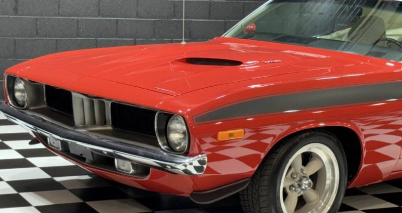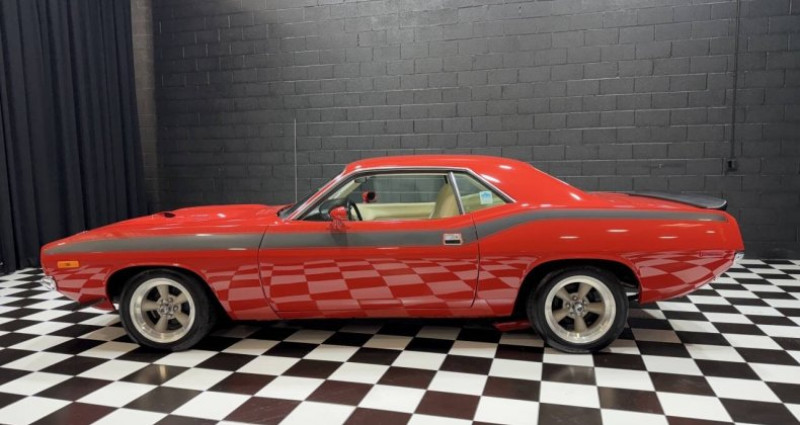 - Marque : Plymouth - Modèle : Barracuda - Année : 1972 - Couleur extérieure : Rouge - Couleur intérieure : Blanc - Type de carrosserie : Coupe - Boîte de vitesses : Automatique 3-vitesse - Moteur : 360 - Pneus : 16 Mag Wheels 8 3/4 - Arrière : 3:55 Posi - Équipements : Sway Bars, AM/FM Stereo, 3-Speaker Dash, Factory A/C, Aftermarket Tach, Flowmaster Dual Exhaust, 'Cuda Bulge Hood, AAR Spoilers - État : Solide, sans travaux de réparation, toutes pièces originales - Kilométrage : 0 - Titre : Titre propre et net - Vendeur : MGM Classic Cars LLC (entreprise de vente de voitures classiques). Provenance : Illinois. Disponibilité : environ 7 semaines, clés en main. 55 500 € tout compris (importation, taxes, procédure d'immatriculation). Annonce publiée le 16/12/2025