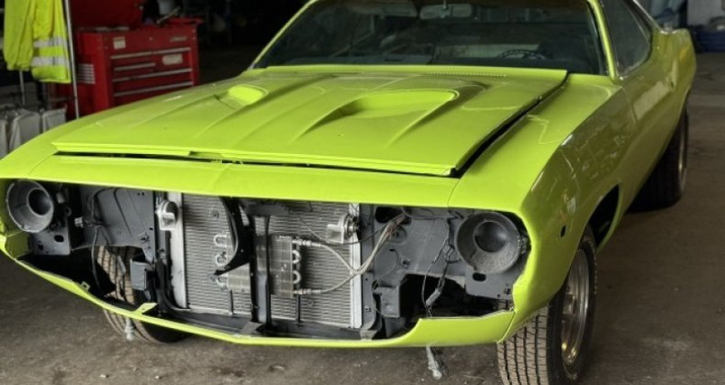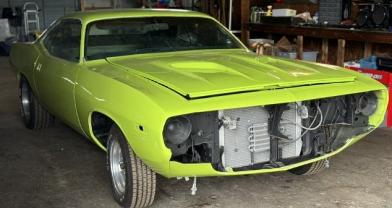 - Année : 1973 - Marque : Plymouth - Modèle : Cuda 440 - Mileage : 0 - Couleur : Inconnu - Travaux : Travaux de carrosserie et peinture effectués (plus de 10 000 $ passés) - État : Travaux intérieurs et trim non terminés (idée de mise à jour de l'intérieur) - Moteur : Moteur 440 construit avec un seul 4BBL et transmission automatique - VIN : Inconnu - État du véhicule : En cours de rénovation (projet de swap Hellcat abandonné). Provenance : Virginia. Disponibilité : environ 7 semaines, clés en main. 62 500 € tout compris (importation, taxes, procédure d'immatriculation). Annonce publiée le 03/01/2026