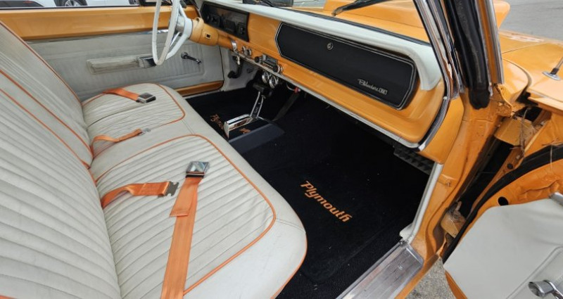 Ce 1966 Plymouth Belvedere II deux portes à toit dur a été réhabilité en 2020 et est muni d'un V8 stroker de 493 ci équipé d'une culasse Comp Cams, d'un carburateur Holley quatre-barreaux, d'égouts d'échappement Hooker et de composants Edelbrock, associé à une transmission automatique à trois vitesses TorqueFlite avec un convertisseur de couple de 3 000 tr/min. Le véhicule a été acquis par le vendeur en 2020 et est peint en orange sur un intérieur blanc et orange. Le carrosserie est dotée d'un prise-air, de roues de 15, de freins assistés, de suspensions QA1, de direction assistée, d'une commande de vitesses B&M, d'un système audio après-marché et d'un indicateur de vitesse monté sur tableau de bord. Ce Belvedere II est proposé avec un permis de circulation californien propre en possession du vendeur. Le véhicule a été repeint orange auparavant et doté d'un prise-air à cette époque. Le pare-chocs avant a été réchromé, et le pare-chocs arrière a été acquis chez Auto Metal Direct. Des bulles sont visibles près du pilier C du conducteur et d'autres écailles, touch-ups et bulles sont notées. Les roues de 15 sont montées avec des pneumatiques BFGoodrich Radial T/A. Le véhicule est équipé de direction assistée, et la freinage est assuré par des freins à disque assistés au avant et des freins à tambour au arrière. Le vendeur recommande un ajustement de direction avant. Les suspensions arrière ont été remplacées en août 2025, et les suspensions QA1 à ajustement unique ont été installées à chaque coin en même temps. Les sièges avant et arrière sont en vinyle blanc avec bordures orange, et les équipements intérieurs comprennent des ceintures de sécurité orange, des fenêtres de ventilation avant, une commande de vitesses B&M, des tapis de sol marqués Plymouth et un chauffage. Un système audio Custom Autosound a été ajouté et dispose de Bluetooth, USB et entrée audio. Le volant est posé devant un compteur de vitesse à 120 mph, un indicateur de vitesse monté sur tableau de bord et des jauges supplémentaires pour la température d'eau, le niveau de carburant et la charge de l'alternateur. Des jauges supplémentaires ont été installées sous le tableau de bord. L'odomètre à cinq chiffres montre 87 000 milles, environ 1 500 desquels ont été ajoutés sous la propriété actuelle. Le kilométrage total n'est pas connu. Le compteur de vitesse et le compteur de carburant ne fonctionnent pas. Le moteur à trois cylindres fabriqué en usine à 273 ci a été remplacé auparavant par un V8 à 440 ci qui a été étiré à 493 ci environ en 2021. L'moteur est équipé d'une culasse Comp Cams, d'un carburateur Holley quatre-barreaux, d'un embrayage Holley et d'un maneton Edelbrock. Le moteur a été muni d'une batterie et le pétrole a été changé en août 2025. La puissance est transmise aux roues arrière par une transmission automatique à trois vitesses TorqueFlite 727 avec un convertisseur de couple de 3 000 tr/min.. Ce descriptif est basé sur les éléments communiqués par le propriétaire avec un traitement assisté. Merci pour votre indulgence en cas de formulation perfectible. Provenance : California. Disponibilité : 7 semaines, clés en main. 24 500 € tout compris (importation, taxes, procédure d'immatriculation). Annonce publiée le 08/11/2025