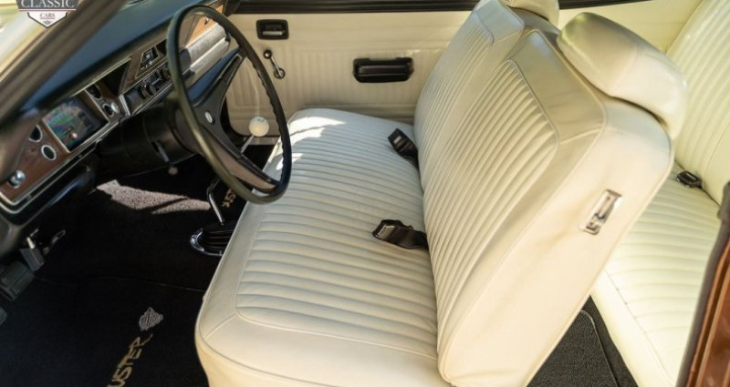 Le modèle présenté ici est un Plymouth Duster de 1973, équipé d'un moteur 340 V8 de 4 barreaux et d'une boîte de vitesses à 4 rapports manuelle. Construit à Dodge Main à Hamtramck, Michigan, ce Duster conserve son caractère authentique, confirmé par un décodage détaillé de la plaque de fender. Peint en JY9 Gold métallisé foncé et doté de bandes longitudinales et transversales blanches contrastantes, ce véhicule offre une silhouette irréprochable typique de l'ère muscle. Les tuyaux d'échappement en chrome, les miroirs de course doubles, les moulures de la raie d'égout et les moulures de bas de caisse renforcent son aspect sportif. Le moteur de fabrication E55 a une puissance initiale de 275 chevaux et est associé ici à une transmission A833 à 4 rapports manuelle. Les suspensions avant sont renforcées par des tubulures QA1, avec barre de torsion frontale et des barres de torsion réglables. Les freins avant sont des disques et les freins arrière sont des tambours à 10 pouces, aidés par un système d'échappement à double échappement avec tuyaux en chrome. Le compartiment de conduite a été optionné avec le Groupe de Décoration Intérieure, doté d'un siège banc parchemin split réglable en position lombaire, de panneaux de porte pleins et de détails de finition soignés, tous en bon état. La radio AM solide et le dégivrearrière chauffant sont des options intéressantes. Cette Duster est un Mopar bien optionné et prêt à être apprécié par le prochain propriétaire, accompagnée des jantes Rallye originales et pneus.. Ce descriptif est basé sur les éléments communiqués par le propriétaire avec un traitement assisté. Merci pour votre indulgence en cas de formulation perfectible. Provenance : Michigan. Disponibilité : 7 semaines, clés en main. 37 000 € tout compris (importation, taxes, procédure d'immatriculation). Annonce publiée le 01/10/2025