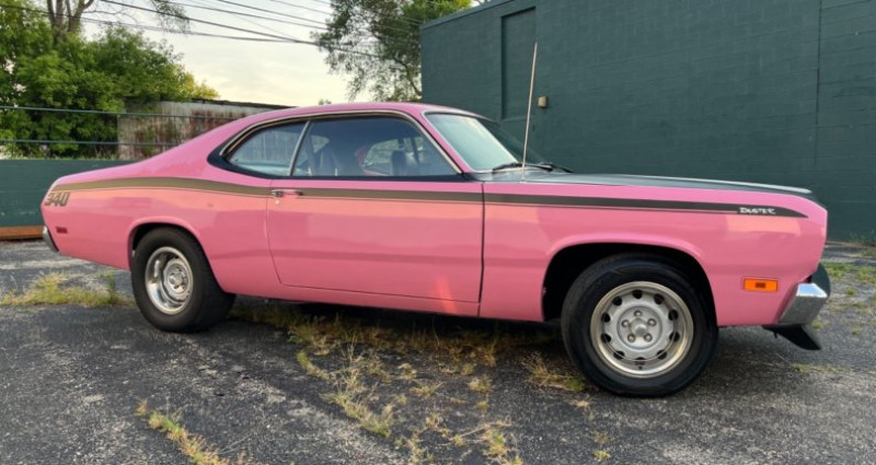 - Voiture de 1970 : Plymouth Duster 340 - Moteur : 360, remplacé et puissant - État : Solide et original, mais a été entreposé pendant de nombreuses années - Couleur : Peinture fraîche, rose avec traces de jaune sous-jacentes - Intérieur : Bien conservé, sans déchirures ou lacérations visibles - Travaux : Peinture récente, vidéo disponible pour voir l'état de la voiture - Marque : Mopar - Modèle : Duster 340 - Année : 1970 - Condition : Super clean, plaisant à conduire. Provenance : Michigan. Disponibilité : environ 7 semaines, clés en main. 33 500 € tout compris (importation, taxes, procédure d'immatriculation). Annonce publiée le 17/12/2025