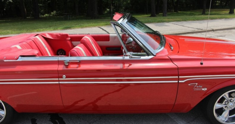 - Marque : Plymouth - Année : 1963 - Modèle : Fury - Type de véhicule : Cabriolet - Couleur extérieure : Rouge - Couleur intérieure : Rouge - Moteur : 426 max wedge - Transmission : 727 Torqueflite automatique - Differential : 8 3/4 avec SureGrip 3.23 gears - Freinage : Freinage amélioré - Air conditionné : Oui, via une installation Vintage air - Jantes : Jantes à 5 rayons après-market avec pneus modernes radiaux - Kilométrage depuis la restauration : environ 2100 miles. Provenance : Missouri. Disponibilité : environ 7 semaines, clés en main. 86 000 € tout compris (importation, taxes, procédure d'immatriculation). Annonce publiée le 10/12/2025