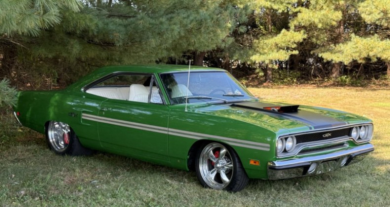 Le véhicule en question est un Plymouth GTX de 1970 personnalisé équipé d'un moteur à tête en aluminium 440ci Super Commando, associé à une transmission automatique 727. Le véhicule dispose d'un Dana Super Track Pac, d'un capot Air Grabber, d'une suspension personnalisée et de freins à disque de 4 roues Wilwood, ainsi qu'un roues de 18 pouces à l'avant et 20 pouces à l'arrière équipés de pneus Mickey Thompson. La cabine blanche dispose d'une douche complète et d'un siège arrière complet. La peinture Snake Skin Green du véhicule est impeccable et resplendit éblouissante sous le soleil. Un recouvrement complet en céramique professionnel a été appliqué il y a trois mois. Le véhicule ne nécessite aucune réparation. À voir pour s'en convaincre, il est à la fois impressionnant à regarder et formidable à conduire. Si vous n'aimez pas l'attention, ce n'est pas le véhicule pour vous.Le véhicule a été entièrement restauré avec soin, offrant un confort de conduite et des performances exceptionnelles. Les pièces de rechange originales sont utilisées pour garantir une qualité élevée. La transmission automatique 727 a été révisée et améliorée pour fournir une expérience de conduite exceptionnelle. Le véhicule a une suspension personnalisée pour offrir une conduite stable et un confort de conduite excellent. Les freins à disque de 4 roues Wilwood ont été installés pour une freinage performant et précis.Le véhicule est en état immaculé, avec une peinture qui brille éblouissante sous le soleil. Le véhicule dispose d'une cabine blanche bien entretenue, avec des sièges en bon état. Toutes les pièces du véhicule ont été restaurées pour être en parfait état de fonctionnement. Les roues de 18 pouces à l'avant et 20 pouces à l'arrière sont équipées de pneus Mickey Thompson, offrant un excellent adhérence sur la route.Si vous recherchez un véhicule de collection unique, avec des performances exceptionnelles et une présence imposante, ce Plymouth GTX de 1970 est idéal pour vous. Son moteur puissant et sa suspension personnalisée offrent une conduite exceptionnelle, tandis que sa peinture impeccable et son intérieur bien entretenu lui donnent un aspect élégant et luxueux. Il est vrai que c'est un véhicule qui attire l'attention, mais si vous aimez les voitures de collection et leur conduite, cela ne devrait pas vous déranger.. Ce descriptif est basé sur les éléments communiqués par le propriétaire avec un traitement assisté. Merci pour votre indulgence en cas de formulation perfectible. Provenance : New Jersey. Disponibilité : 7 semaines, clés en main. 132 500 € tout compris (importation, taxes, procédure d'immatriculation). Annonce publiée le 07/10/2025