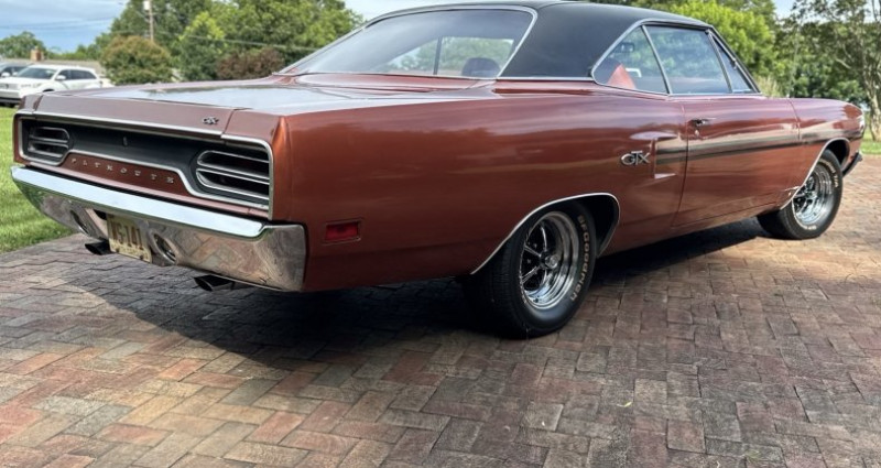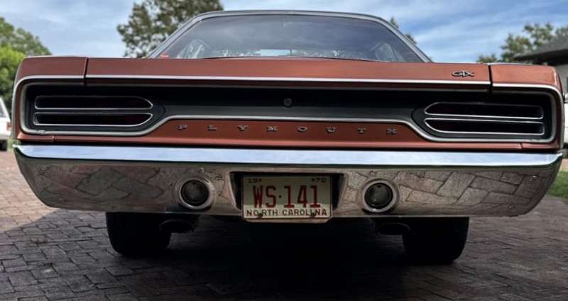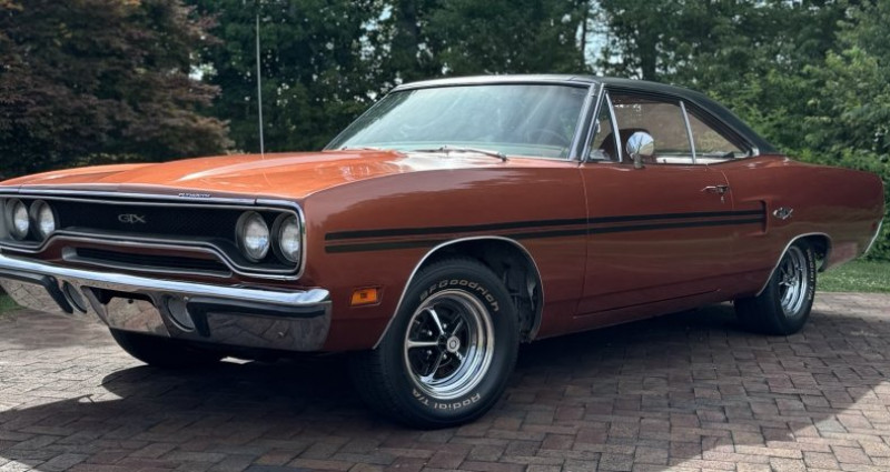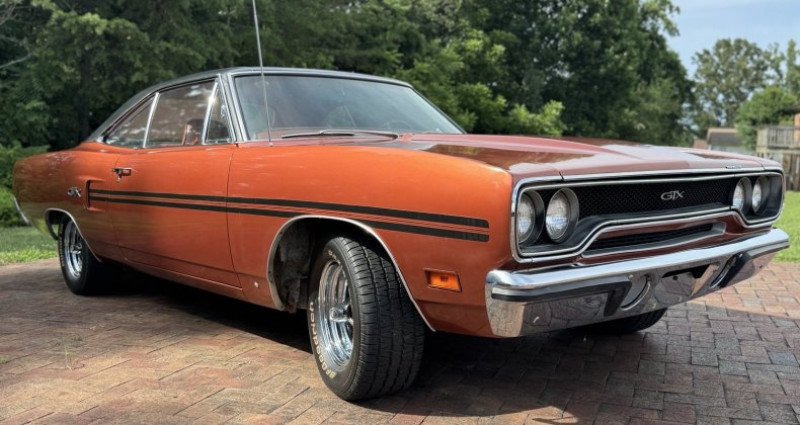 - Modèle : 1970 Plymouth GTX - Moteur : 440 Super Commando - Boîte de vitesses : 727 automatique - Couleur extérieure : FK5 - Intérieur : FK5 original - Transmission : 8 3/4 avec 3.23 gears - Power steering : Oui - Brakes : Manuels - A/C : Non - Radiateur : Recodé et installé il y a environ 3 mois - Ruste : Petites taches de ruste sur la panneau arrière et une grande tache - Intégrité du coffre : Non compromis - Rapport Dave Wise : 65 pages - Documentation : Sales documents, build sheet, fender tag. Provenance : North Carolina. Disponibilité : environ 7 semaines, clés en main. 67 500 € tout compris (importation, taxes, procédure d'immatriculation). Annonce publiée le 08/12/2025