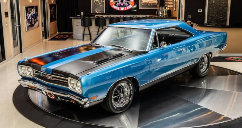 - Marque : Plymouth - Modèle : GTX - Année : 1969 - VIN : RS23L9G297407 - Couleur extérieure : Bleu - Couleur intérieure : Noir - Kilométrage : 79, 471 miles - Moteur : 440 ci V8 - Boîte de vitesses : 3 vitesse automatique Torqueflite - Suspension arrière : Ouverte, 2.75:1 rapport de transmission - Pneus : BFGoodrich Radial T/A, 235/60/15 (avant) et 275/60/15 (arrière) - Équipements : Freinage et direction assistés, climatisation après-marché, roues Magnum 500. Provenance : Michigan. Disponibilité : environ 7 semaines, clés en main. 145 000 € tout compris (importation, taxes, procédure d'immatriculation). Annonce publiée le 15/12/2025