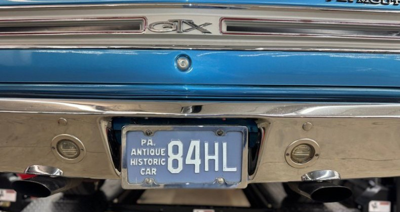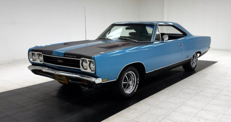 - Marque : Plymouth - Modèle : GTX - Type de carrosserie : Hardtop 2 portes - Année : 1969 - Couleur extérieure : B5 Blue Fire Metallic (2 étapes) avec bandes noires larges - Moteur : 440ci V8 (reconstruit il y a environ 10 000 miles) - Boîte de vitesses : A833 4-vitesse manuelle - Kilométrage : 53 545 miles (le kilométrage réel est inconnu) - Intérieur : Sièges arrière en vinyle noir avec bandes de bois, tableau de bord en bois appliqué, volant à 3 branches - Condition : Imperfections mineures (un chip et quelques bulles dans la peinture). Provenance : , USA. Disponibilité : environ 7 semaines, clés en main. 83 000 € tout compris (import, taxes, procédure d'immatriculation). Annonce publiée le 17/12/2025