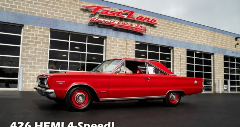 - Marque : Plymouth - Modèle : GTX - Année : 1967 - Couleur extérieure : Rouge vif - Couleur intérieure : Rouge vif - Type de carrosserie : Coupe - Transmission : Boîte manuelle 4 vitesses - Moteur : 426 HEMI V8 - Differential arrière : Sure-Grip avec 3, 55 gears - Kilométrage : 99 590 miles. Provenance : Missouri. Disponibilité : environ 7 semaines, clés en main. 143 000 € tout compris (importation, taxes, procédure d'immatriculation). Annonce publiée le 27/12/2025